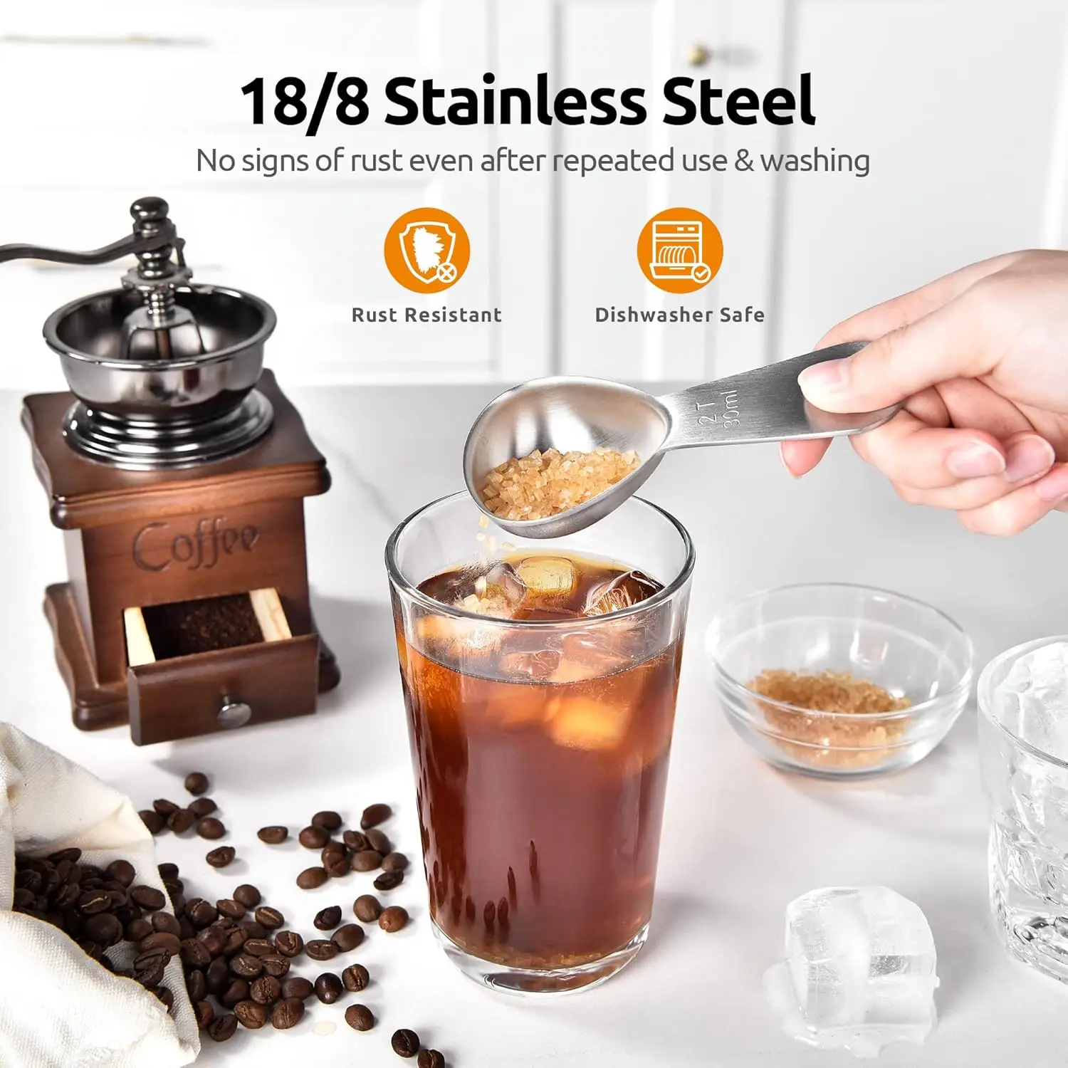 15ml Tablespoon Measuring Spoon Short Handled Measure Scooper for Ground Coffee, Bean 30ml Stainless Steel Coffee Scoop: