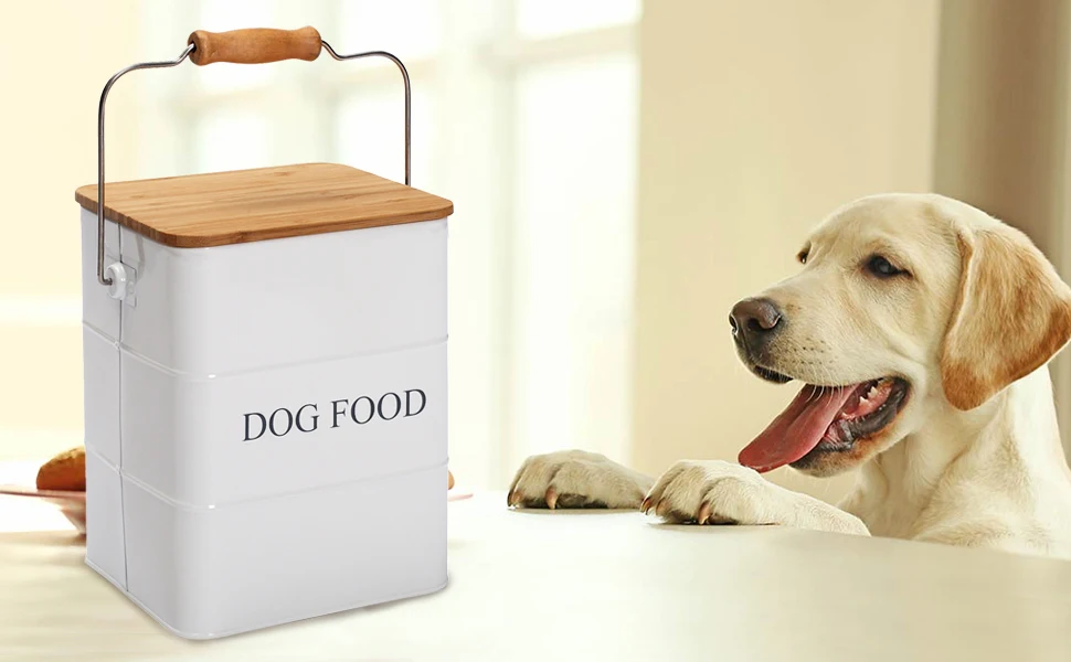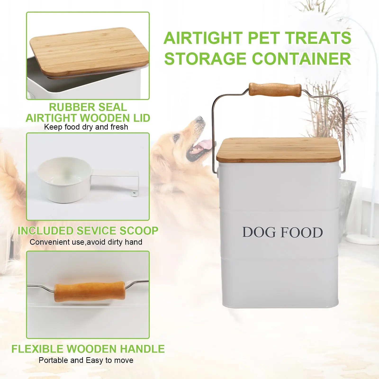2025 Dog Food Storage Container Dog Treats Jar Metal Food Treats Box for Dog Pet Snacks Canisters with Wooden Lid
