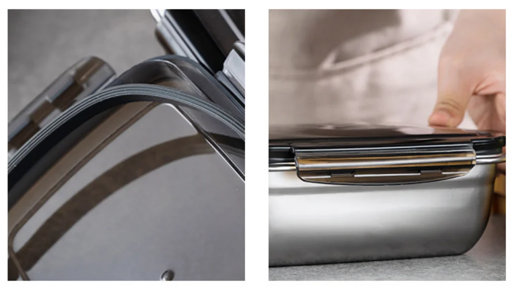 3. The upper cover has a ring buckle design, which has good sealing performance and is not easy to leak, not easy to leave peculiar smell, easy to clean, and clean and hygienic.