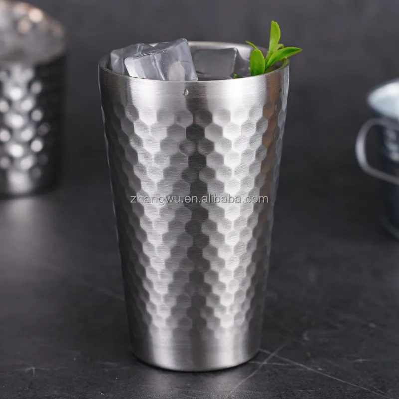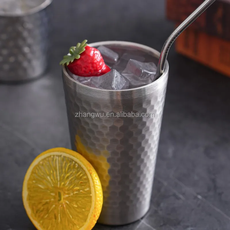 • 450ml Wholesale Luxury Hammered 304 Stainless Steel Wine Cup 400ml Unbreakable Nordic Style Cocktail Tumbler for Hotel Bar