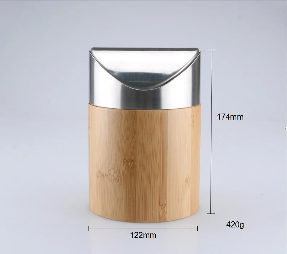 The Bamboo Desktop Mini Flip Wastebasket is a compact, eco-friendly storage solution designed for modern spaces. Crafted from sustainable bamboo, this stylish wastebasket features a flip-top lid for easy waste disposal and dust protection. Its minimalist design seamlessly blends into office desks, dormitories, or home interiors, offering a natural aesthetic while maintaining functionality. With a compact size of 12.2x17.4cm, it optimizes small spaces without compromising capacity. The sturdy bamboo structure ensures durability, and the customizable color options allow for personalized decor. Ideal for managing paper waste, small debris, or daily clutter, this wastebasket supports OEM branding and comes in a protective carton box for secure shipping