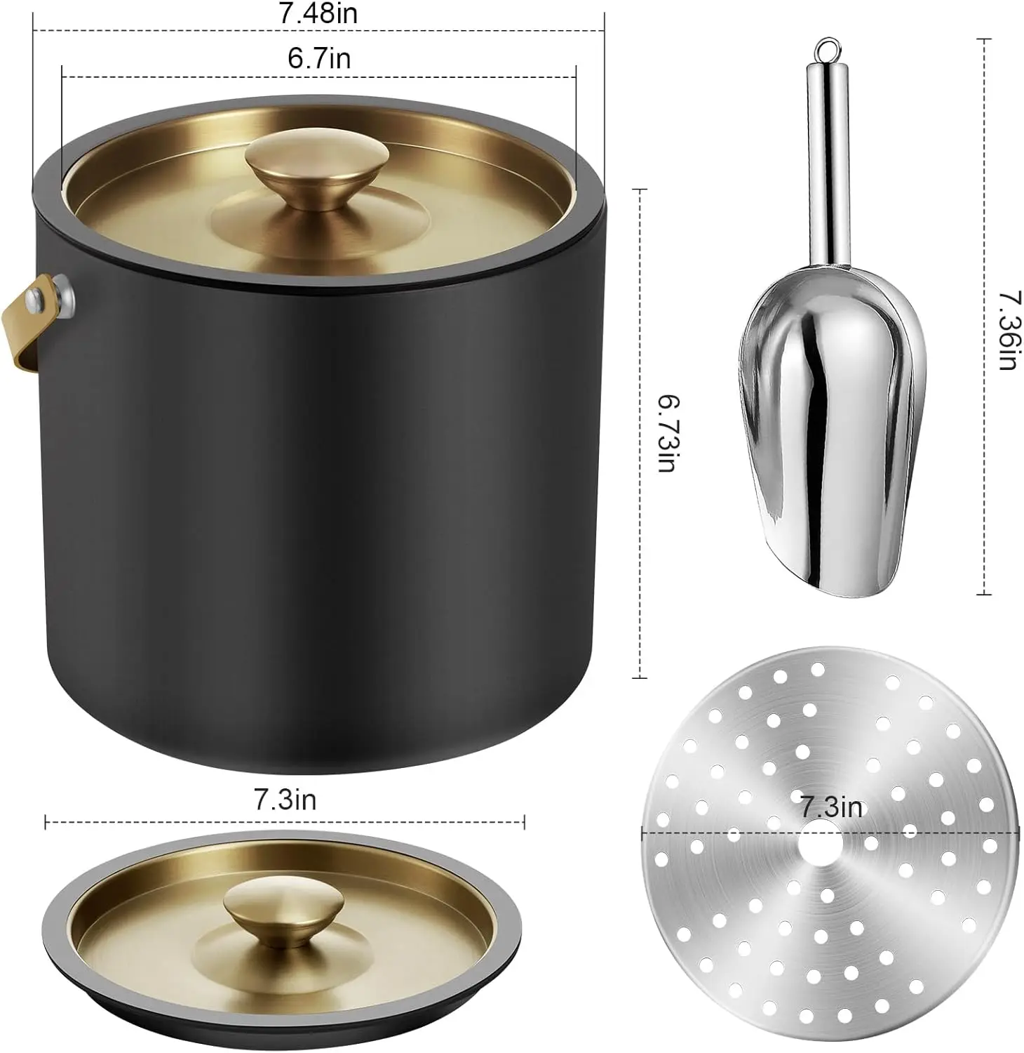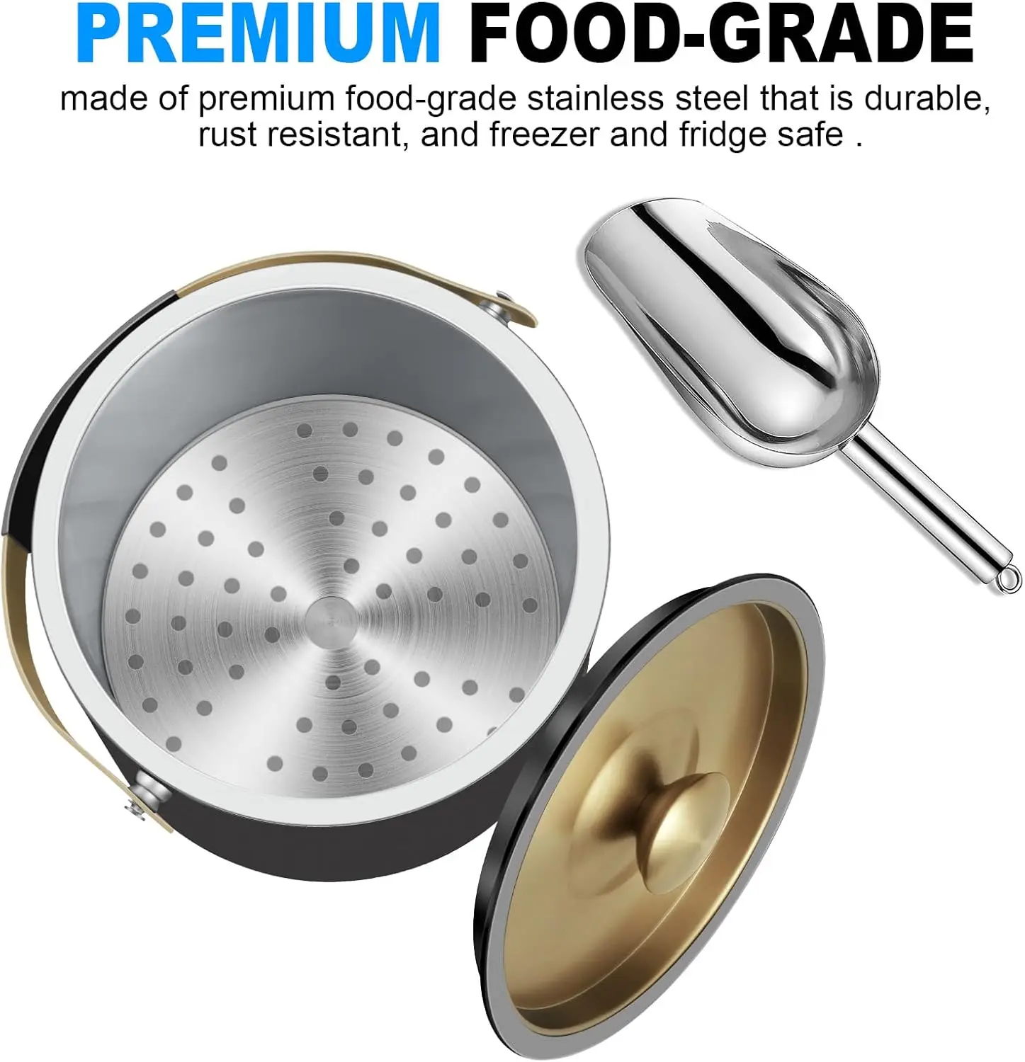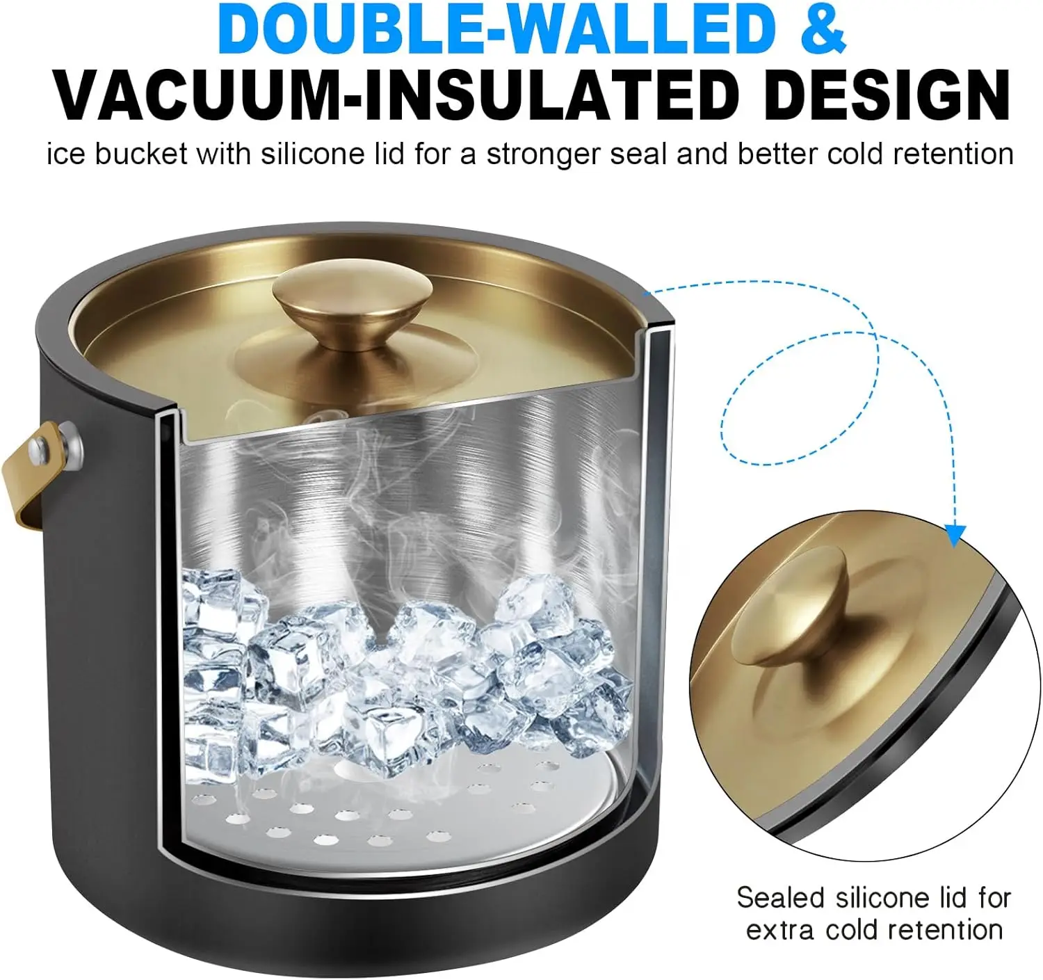 Double Walled Ice Cube Bucket Stainless Steel Insulated Ice Buckets