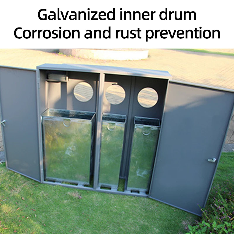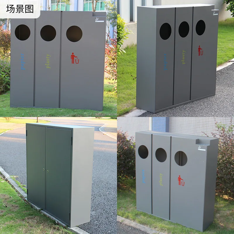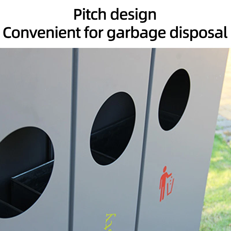 This outdoor trash can system is engineered for organizations requiring reliable separation of waste streams in shared spaces such as hotels and public plazas. The compartmental design enables targeted collection of recyclables and refuse, supporting waste diversion strategies and regulatory compliance. Facility managers and procurement teams benefit from its capacity to organize metal trash can bins by category—plastics, paper, packages, and general waste—streamlining disposal processes and enhancing environmental responsibility.