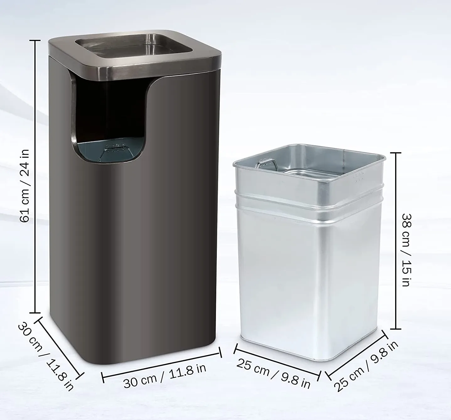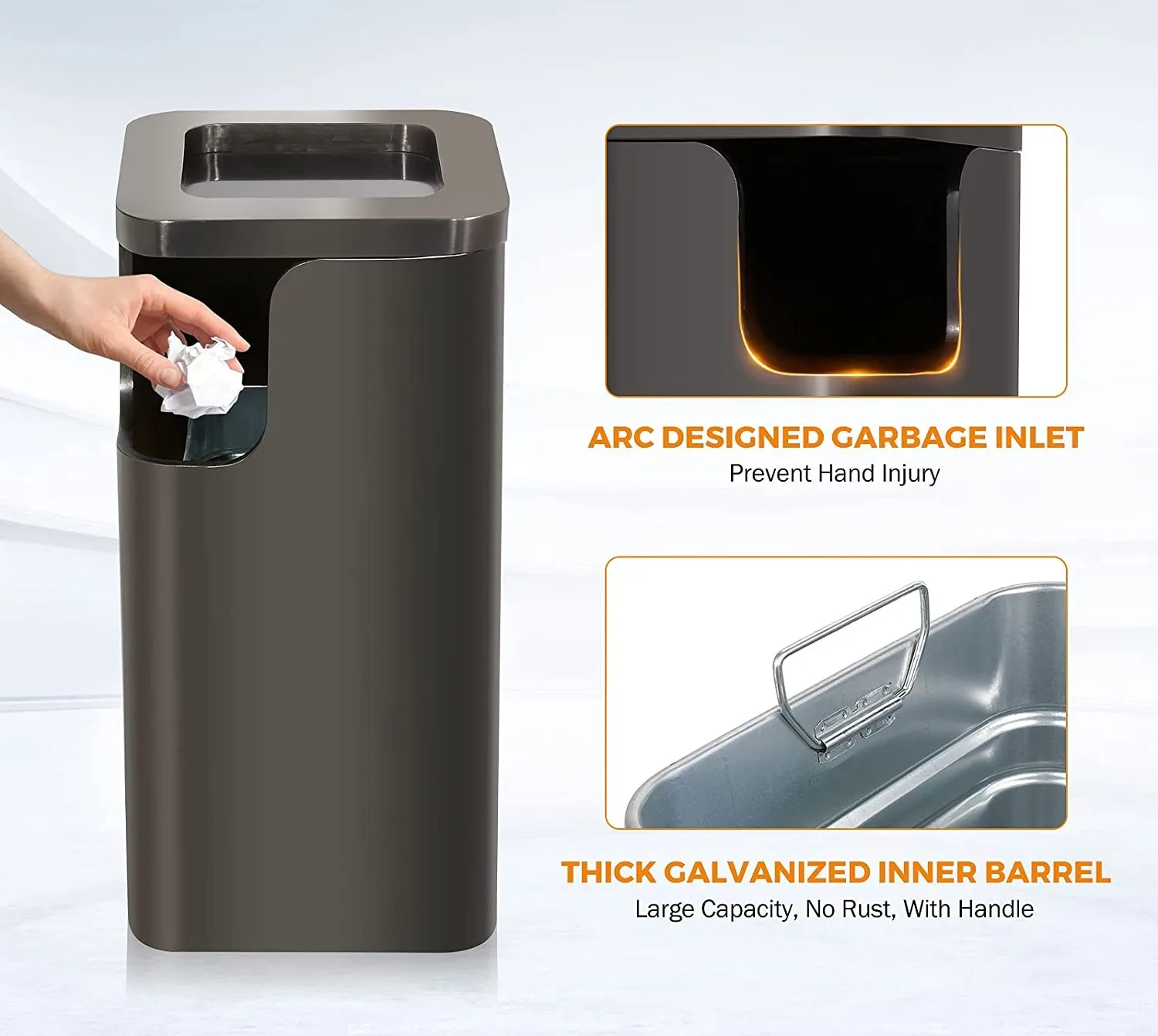 Within commercial smoking areas, the elevator trash can serves as a dual-purpose receptacle featuring a robust metal trash can body combined with a top-mounted ashtray, supporting regulatory compliance and safety protocols. Its durable powder-coated finish withstands exposure to moisture and frequent handling, ensuring reliability in outdoor-indoor transition zones. This container integrates smoothly with facility-wide waste management systems, enabling cleaning teams to perform prompt waste removal without interrupting traffic flow. The product’s customization options also permit tailored branding to reinforce corporate image in highly visible communal spaces such as conference hall foyers and public building entryways.
