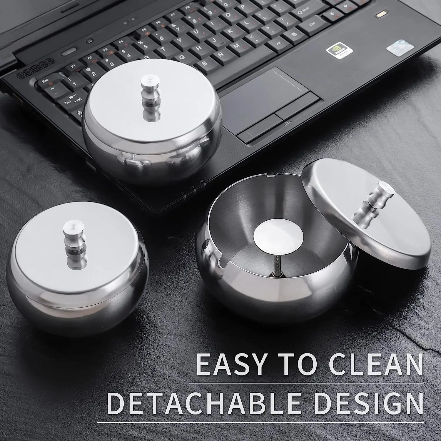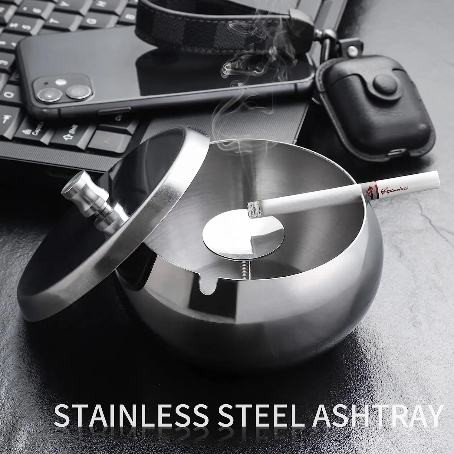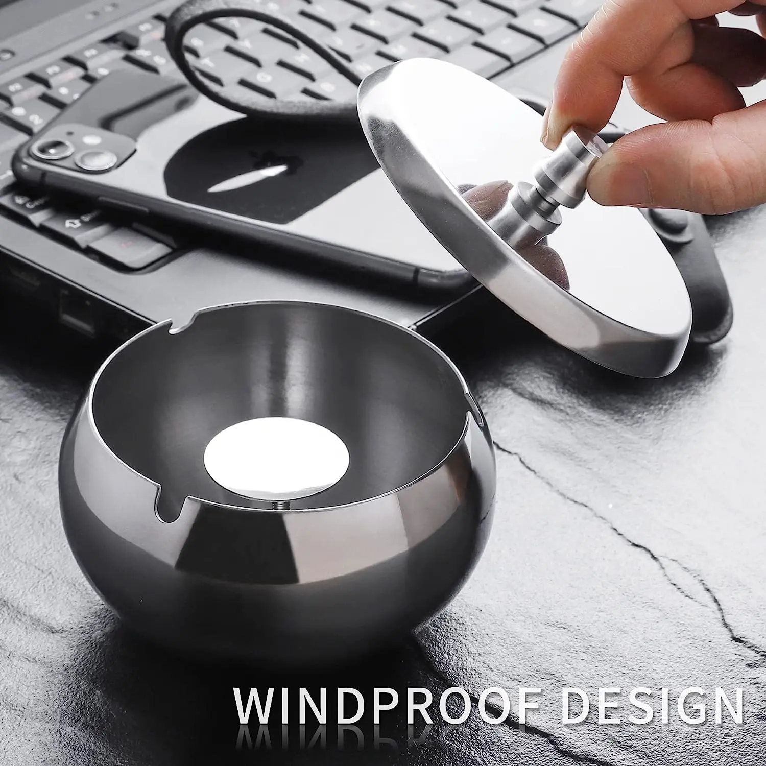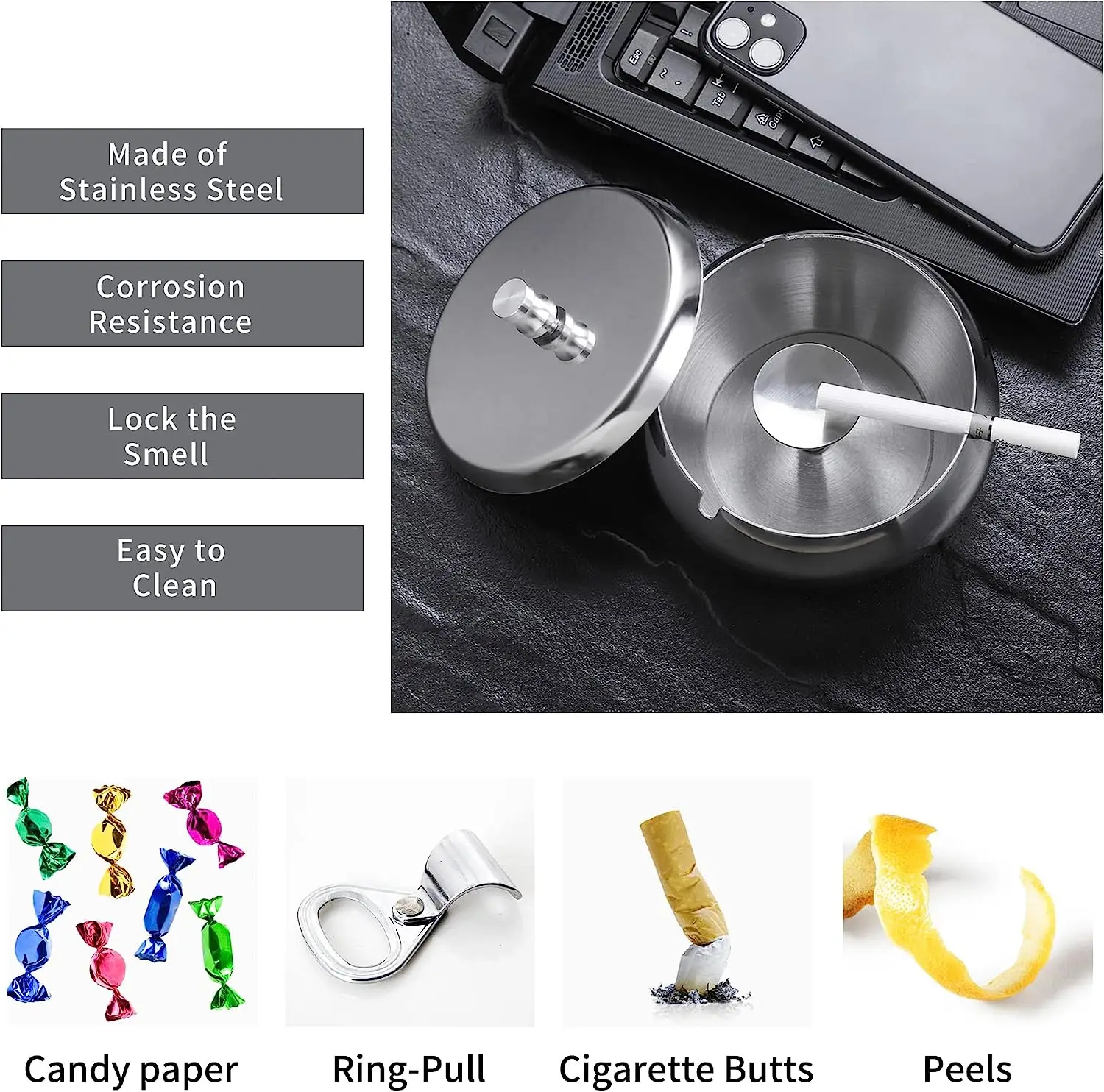 Customized Stainless Steel Ashtray Round Creative Color-plated Belt Cover sealed Desktop Ashtray