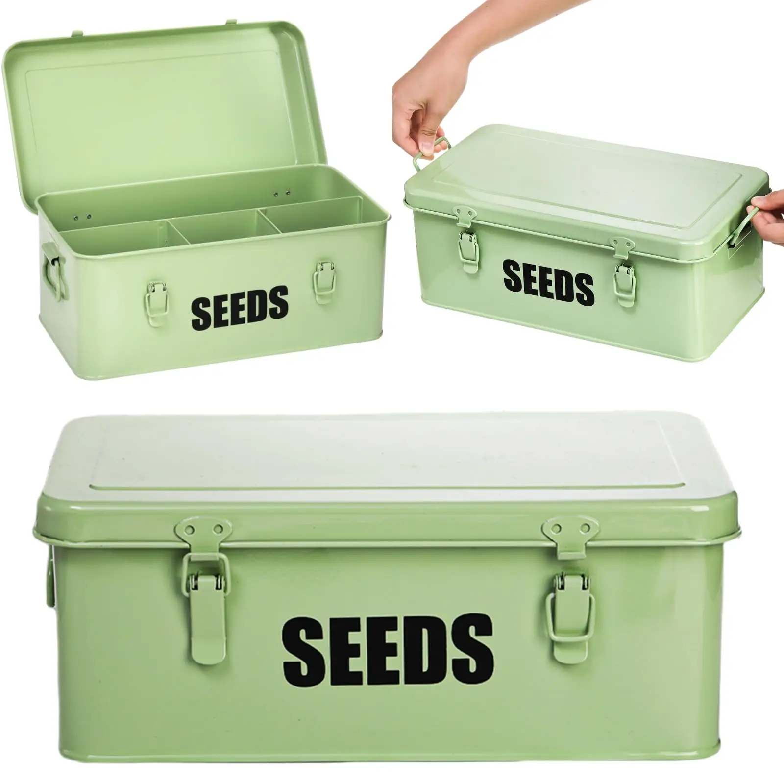Factory Custom Eco-Friendly Metal Seed Storage Box Garden Vegetable Packet Organizer Seed Box with Handles