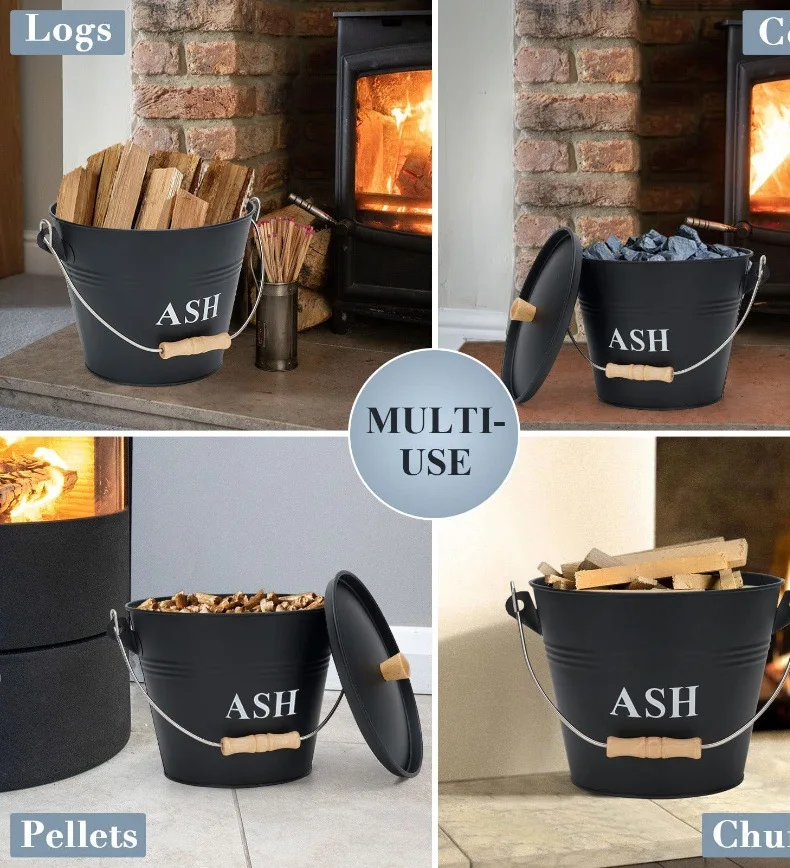 Ideal for storing ash, coal, firewood, or kindling, this pail is an essential accessory for any fireplace, fire pit, or wood-burning stove. Its modern design seamlessly integrates into various home decors, from rustic to contemporary, adding a touch of organized elegance to your living space. Beyond its primary use, it can also serve as a versatile storage solution for other household or patio items.