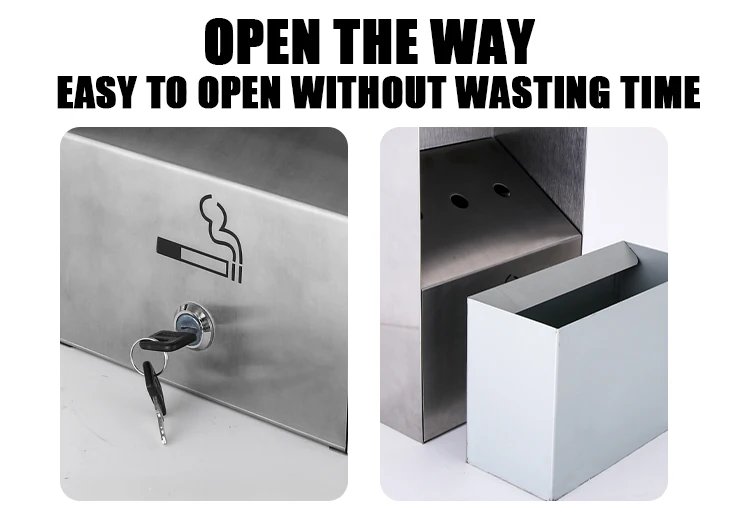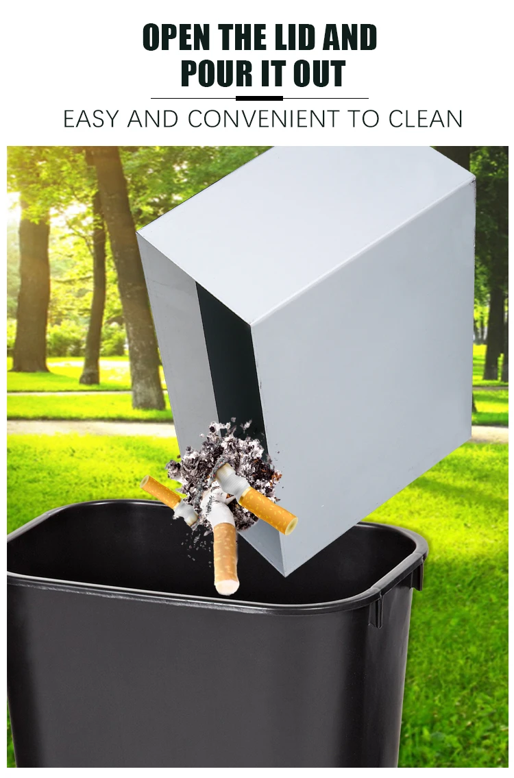 Factory Outdoor Stainless Steel Square Ashtray Receptacle Bin Wall Mounted Metal Cigarette Dust Bin