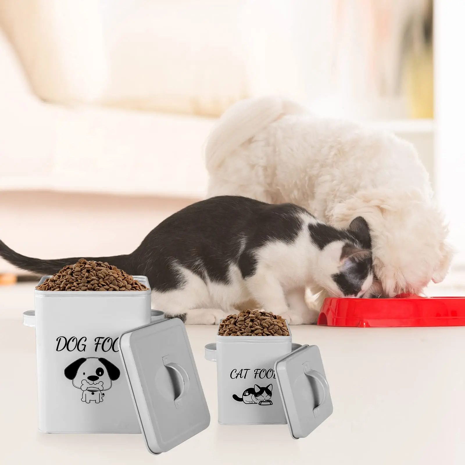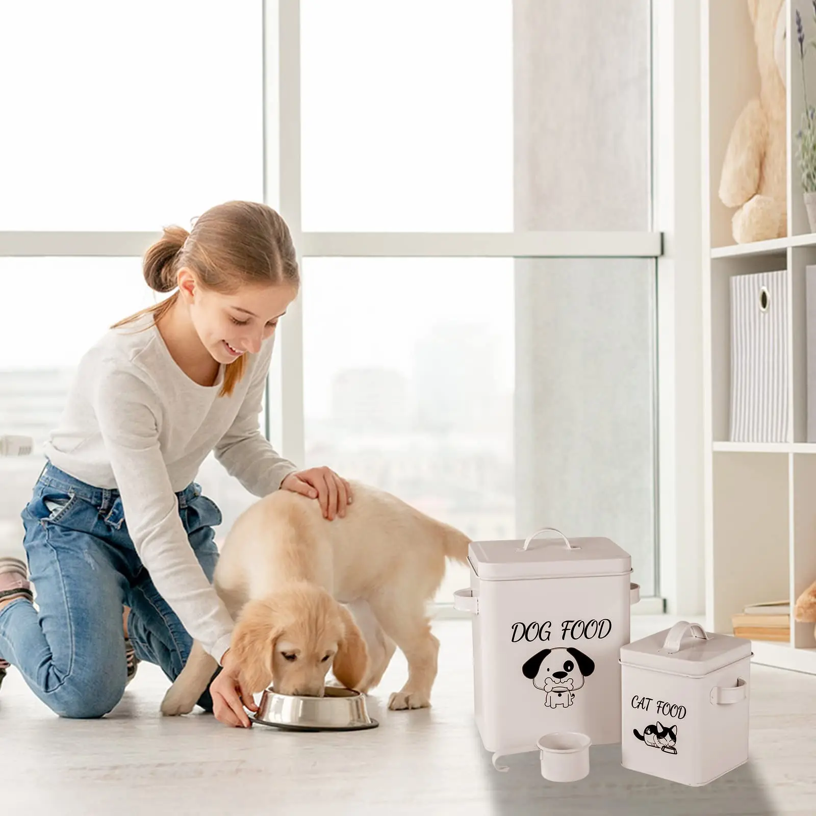 This charming 2-pack metal container set combines rustic farmhouse appeal with practical functionality. Featuring a durable galvanized iron construction, convenient carrying handles, and an airtight design, these containers are perfect for storing dog treats while maintaining freshness. The set includes two distinct sizes and comes with a serving scoop, making it an ideal storage solution for kitchen countertops or pantry organization.