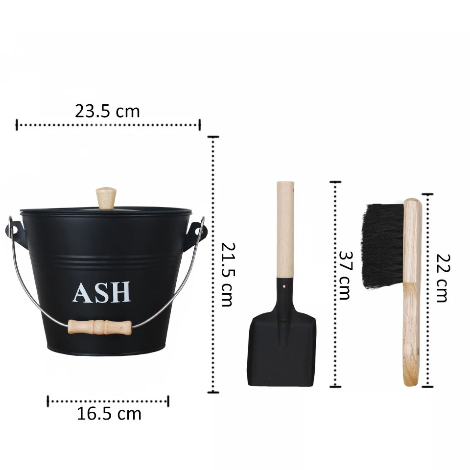• Fireplace Metal Bucket Outdoor Coal Ash Bucket  With Shovel and Brush