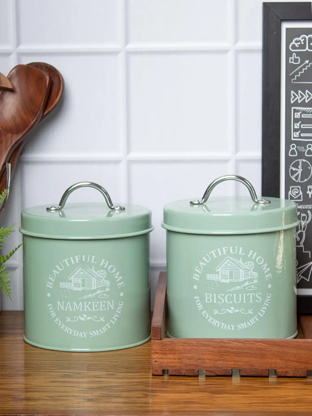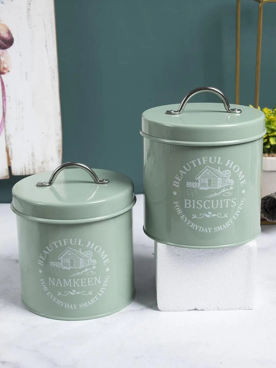 Galvanized Iron Metal Storage Canister Biscuits Storage Jar with Lid Airtige