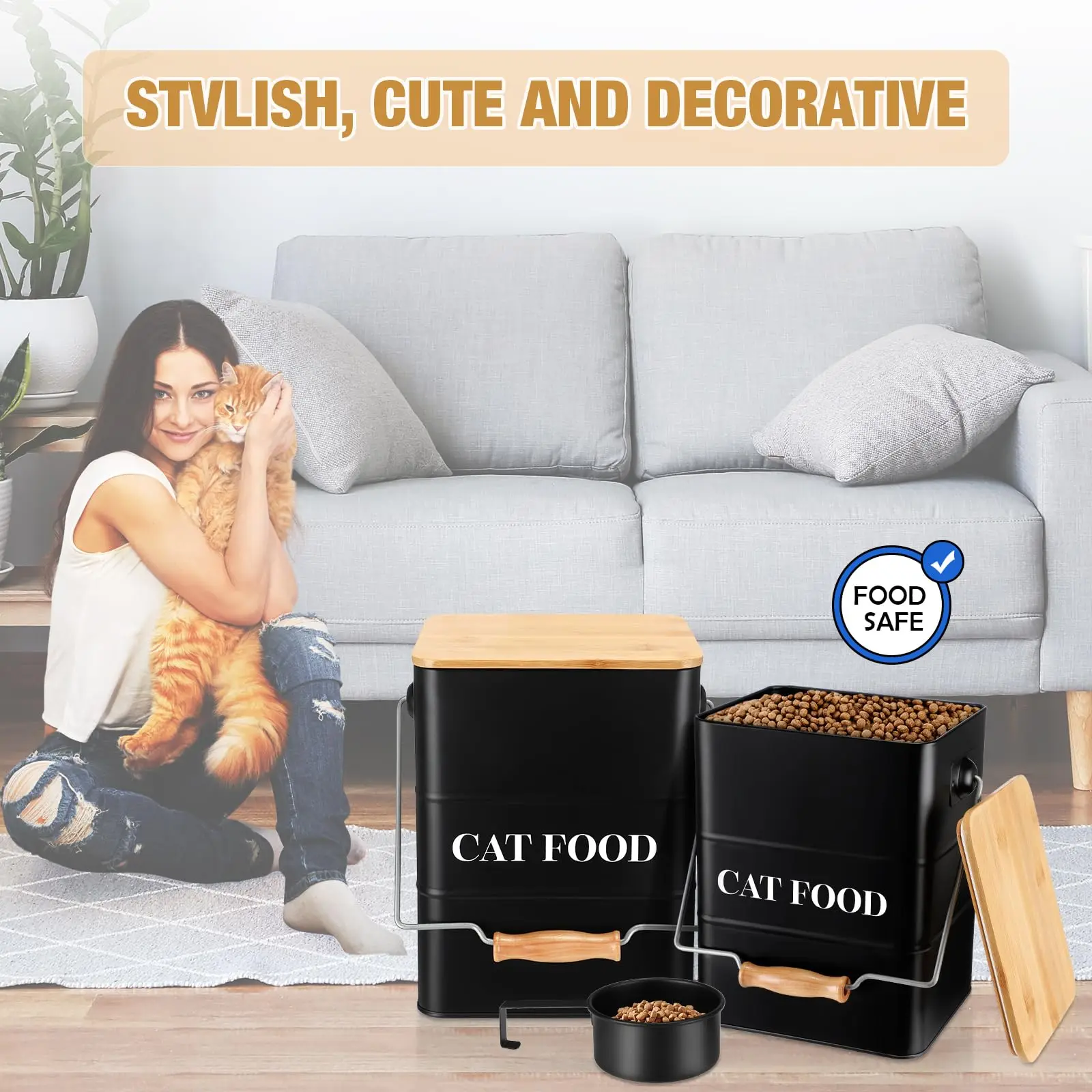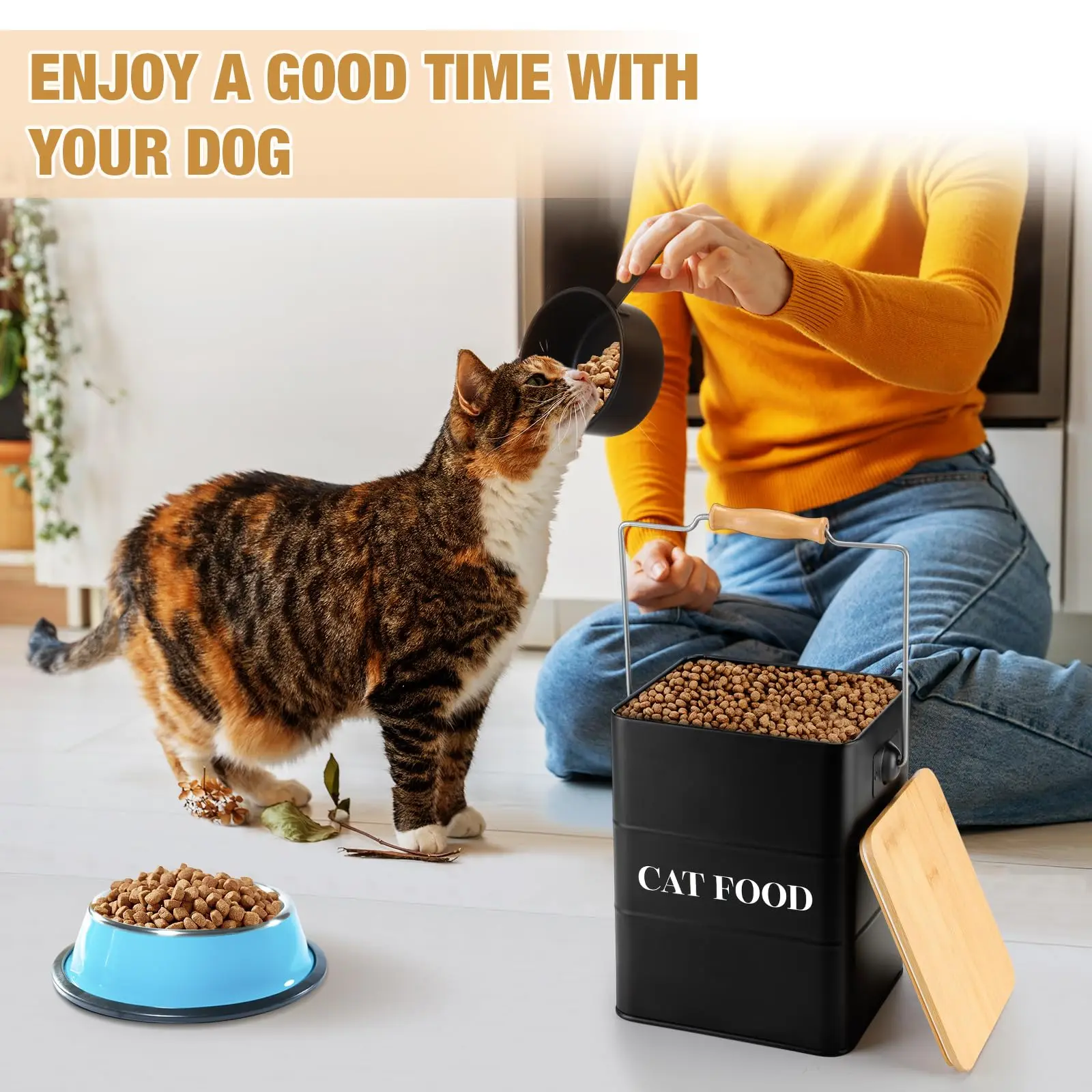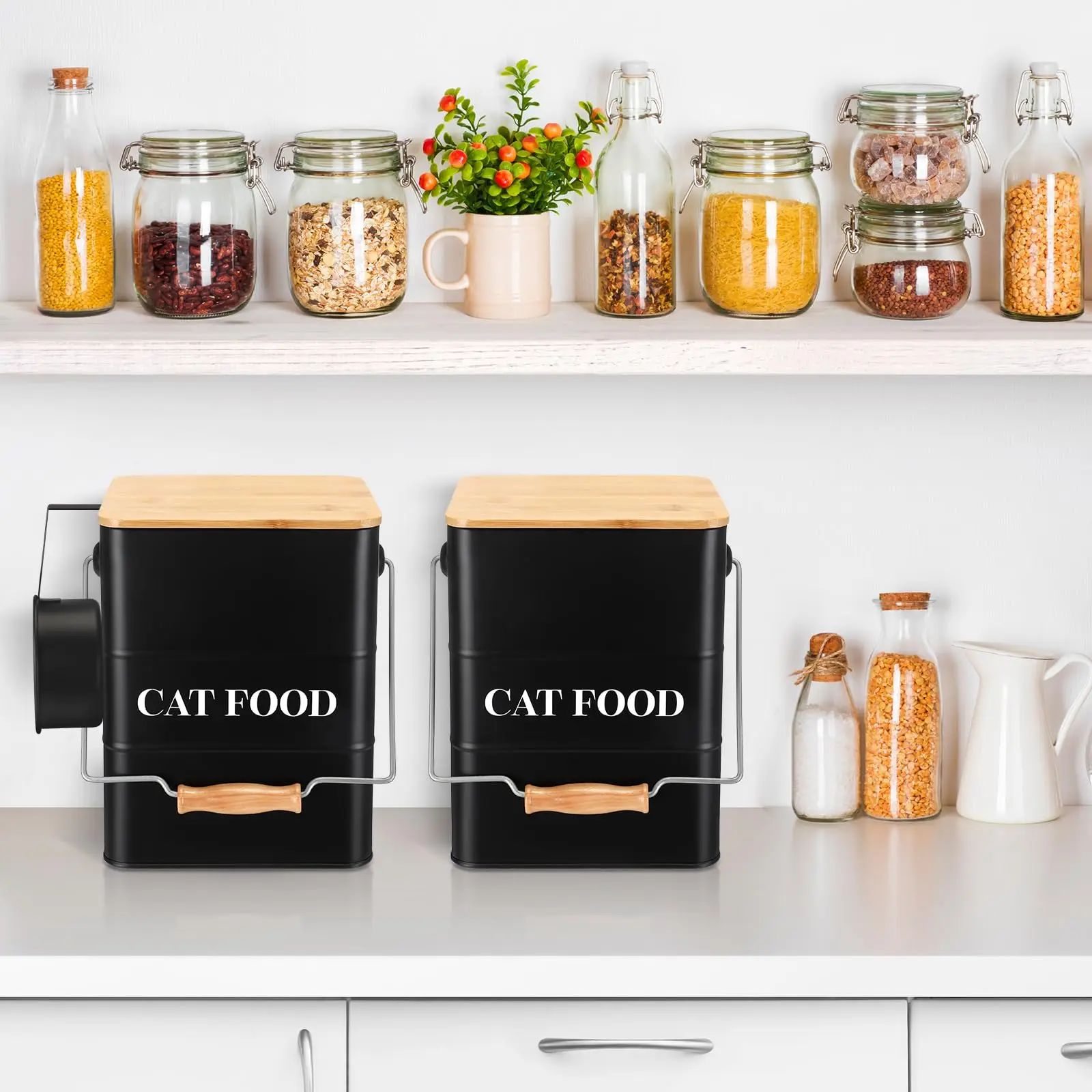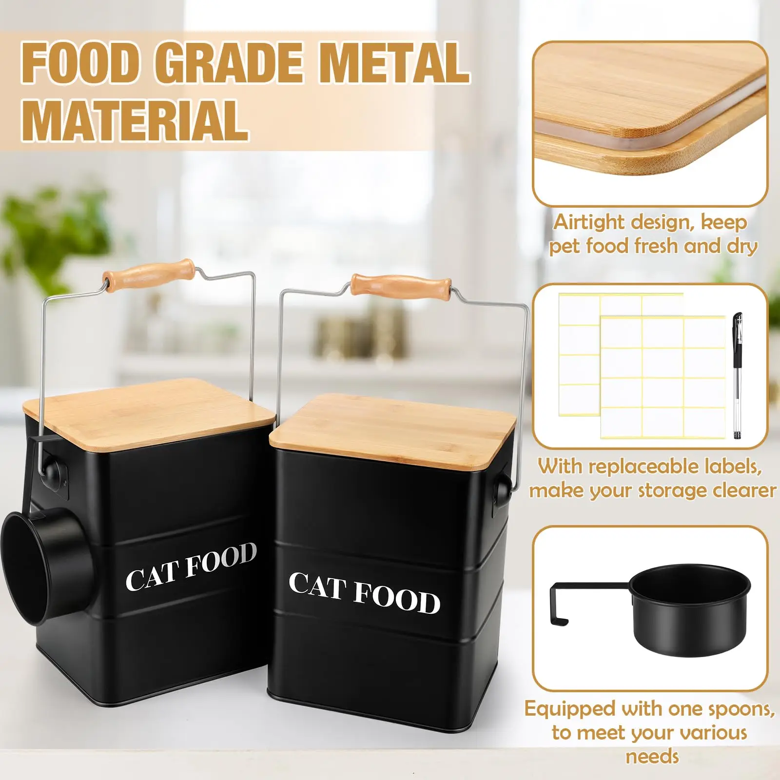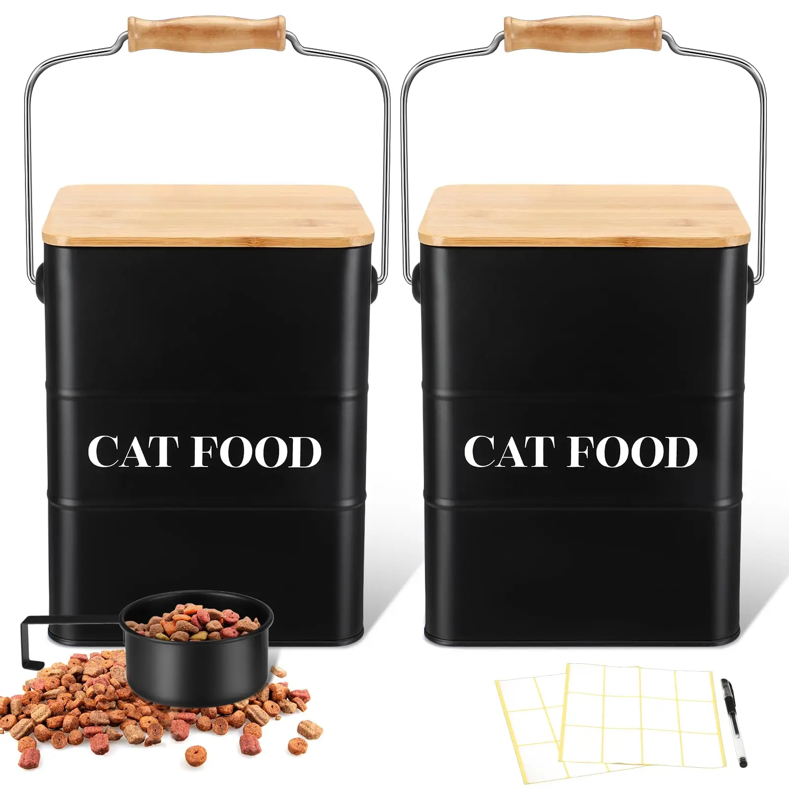Galvanized Iron Pet Food Storage Box Airtight Cat Treat Snack Jars Metal Cat Food Containers with Bamboo Lids and Spoon