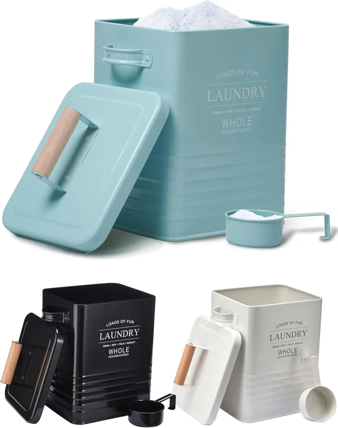 • Space-Saving Design: The rectangular shape maximizes storage efficiency, fitting neatly on washer tops, shelves, or in cabinets. The lid seals tightly to keep detergent dry and fresh.