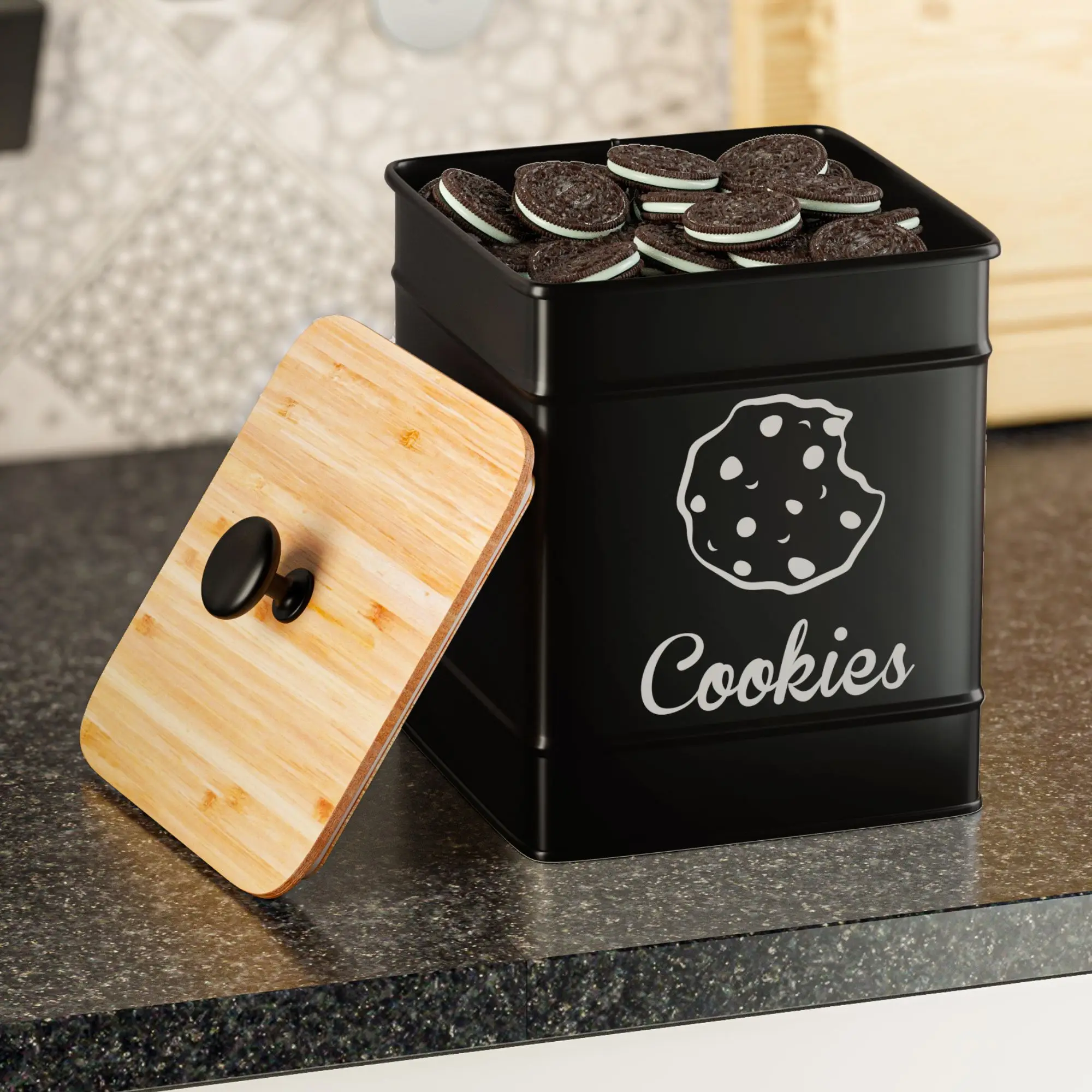 The Kitchen Counter Decorative Metal Storage Box Cookie Jar with Airtight Bamboo Lid combines modern aesthetics with functional excellence. Designed in a sleek American style, this metal container features a durable iron body and a customizable bamboo lid with an airtight seal to preserve freshness for cookies, snacks, or dry goods. Measuring 15.5 * 15.5 * 20Hcm (customizable), it offers ample space for kitchen organization while its square shape adds a contemporary touch. Crafted from food-grade metal and compliant with FDA, BSCI, LFGB certifications, this jar ensures safety and durability. Ideal for parties, home kitchens, or commercial use, it supports multi-functional storage (cookies, tea, spices) and accepts custom colors, logos, and packaging. Lightweight yet robust, it’s a stylish solution for maintaining freshness and elevating countertop decor.
