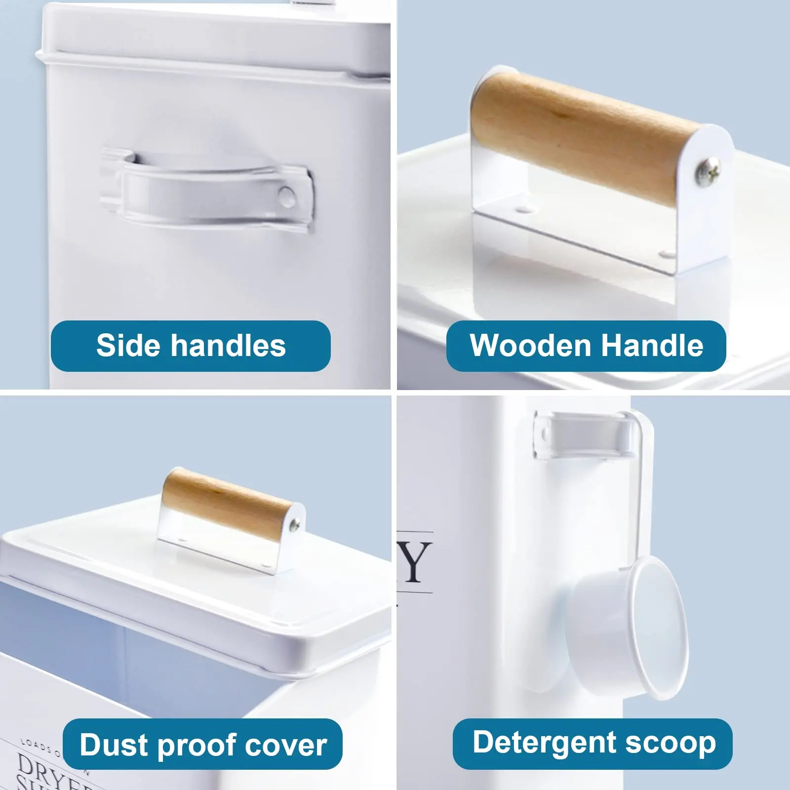 • All-in-One Organization: The laundry pods container boasts a large capacity (6L) for storing pods, powder, or beads, and includes a scoop for easy measuring. The dryer sheet holder keeps sheets tidy, accessible, and dust-free. Its design helps maintain the freshness and scent of the sheets.Specifications: