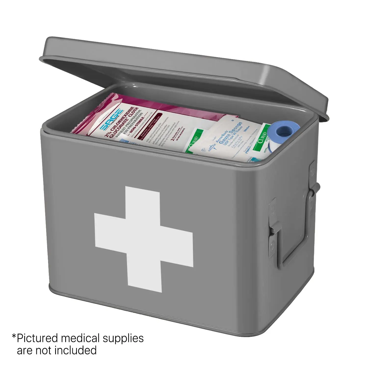 • Metal First Aid Box Organizer Vintage Medical Box Storage Container Bins With Dividers