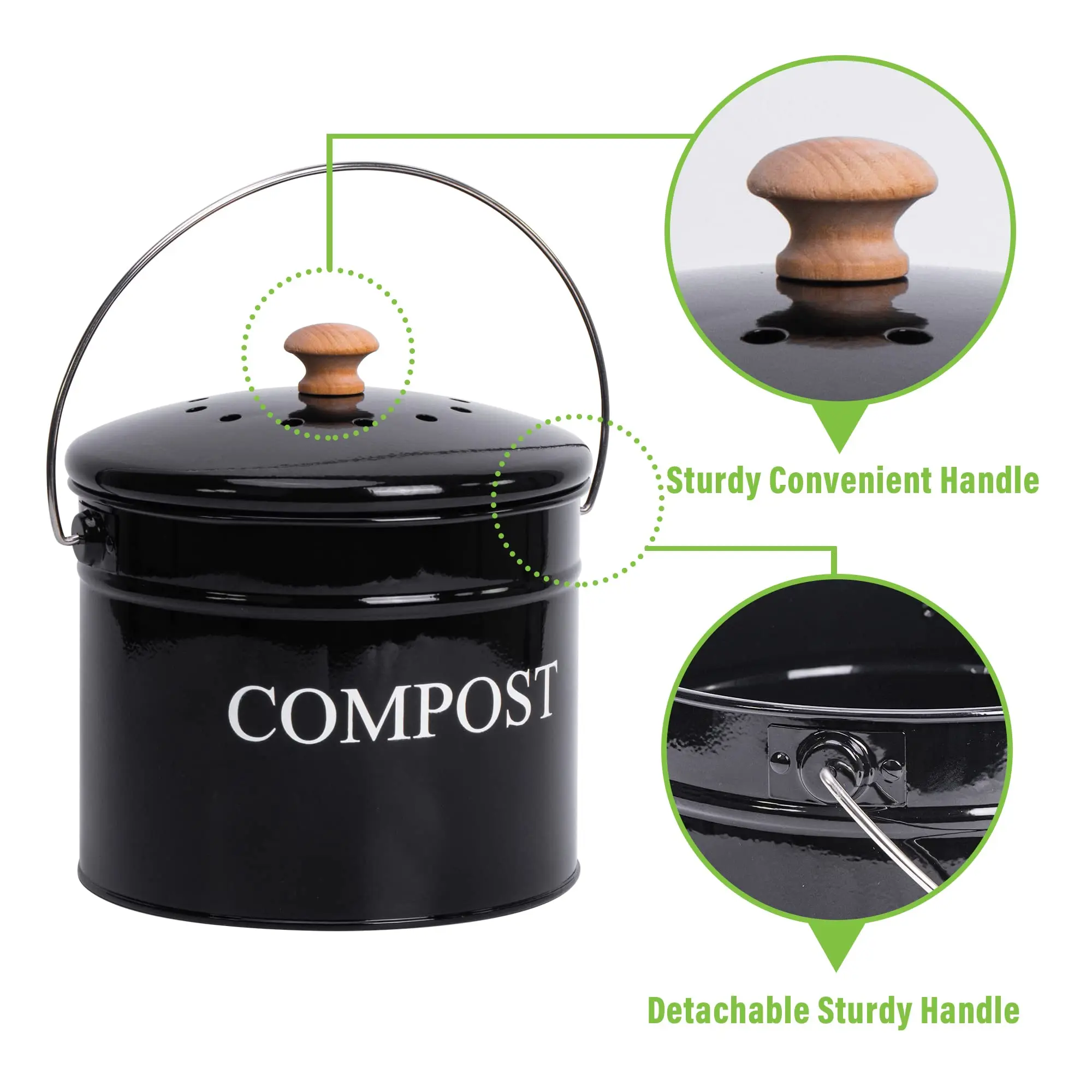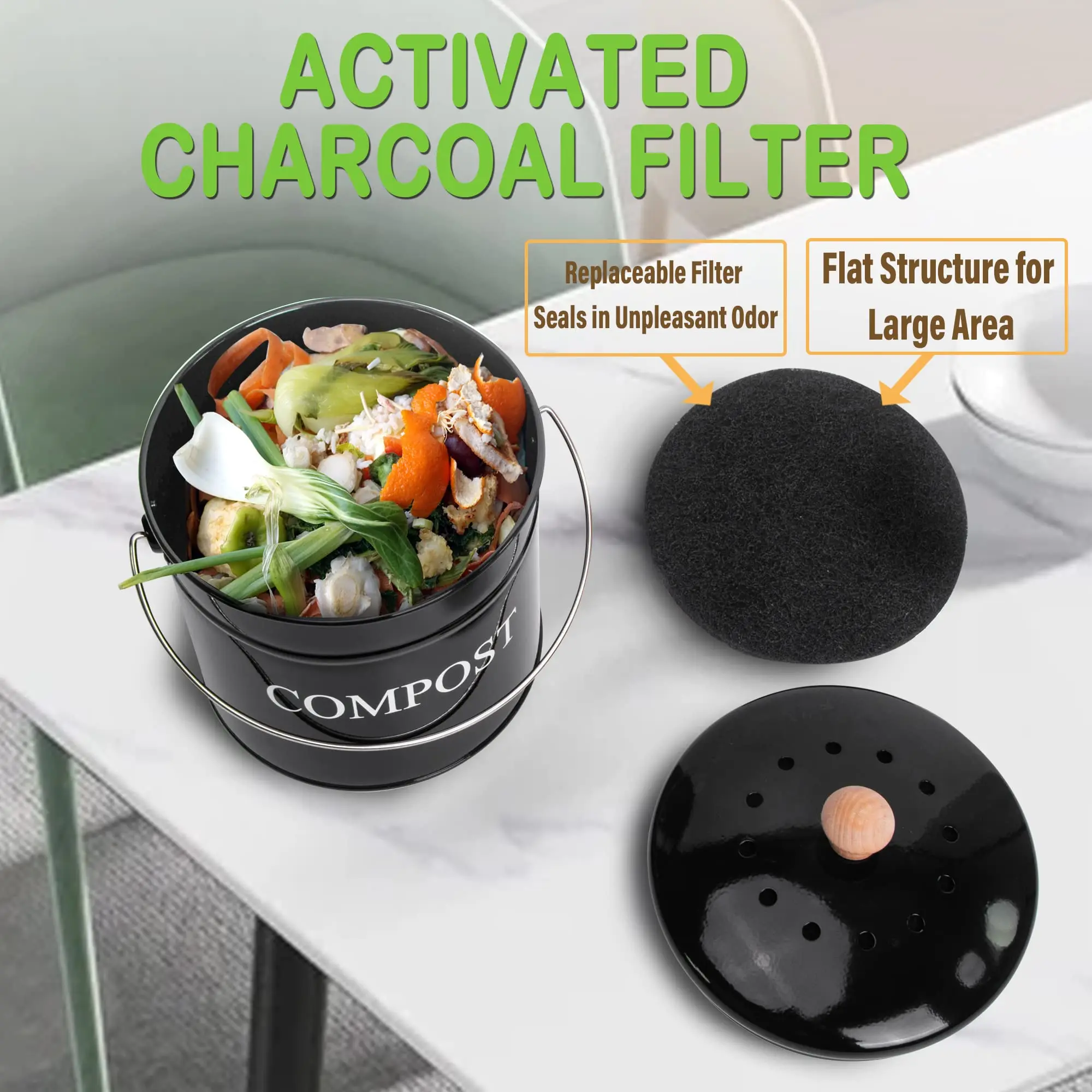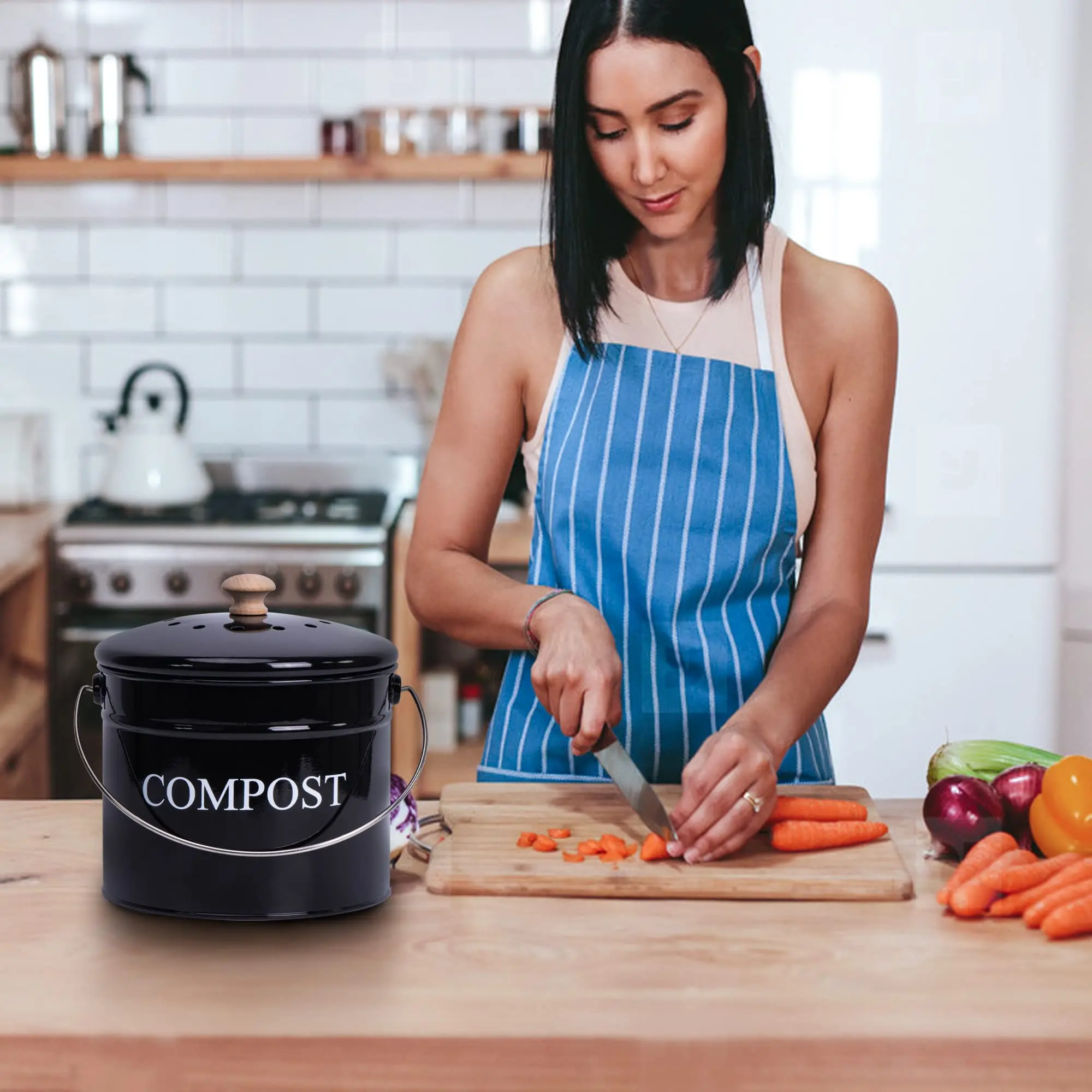 The Modern Rectangular Metal Food Waste Compost Bin is engineered for sleek, odor-free food waste management. Crafted from durable metal with a glossy finish and Equipped with a removable charcoal filter lid, it effectively neutralizes unpleasant odors from fruits, vegetables, and coffee grounds, maintaining a fresh kitchen environment. The 3L capacity (18.5xH15cm) accommodates daily food scraps, while the sturdy handle ensures effortless transport to outdoor compost bins. Designed for eco-conscious households, this bin supports sustainable living by reducing landfill waste and promoting composting. Its customizable color/logo options and FDA/BSCI/LFGB-certified materials ensure safety and adaptability for diverse needs.