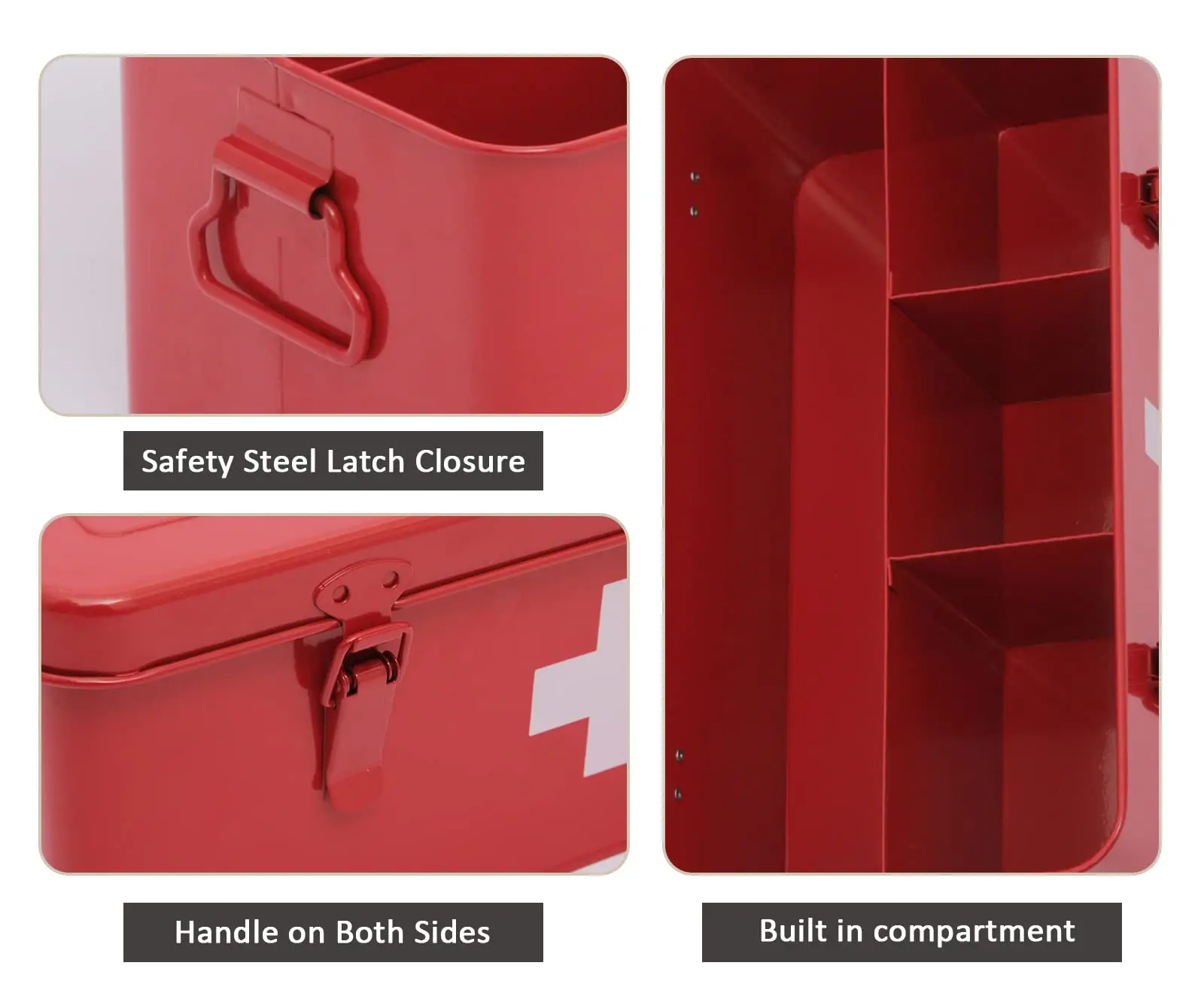 The T234 Metal Red Medicine Box is a secure, stylish, and functional first aid storage solution designed for home, office, or travel use. Crafted from high-quality iron with a glossy finish and a durable stainless steel lid, this rectangular medical kit box features a safety-lock design to keep contents protected. With a generous 7L capacity (32.5 × 17.3 × 13.7 cm), it’s ideal for storing bandages, medications, emergency supplies, and more. Certified to meet FDA, LFGB, and BSCI standards, it’s both eco-friendly and reliable. Custom colors, logos, and sizes are available—perfect for OEM/ODM partnerships and bulk orders.