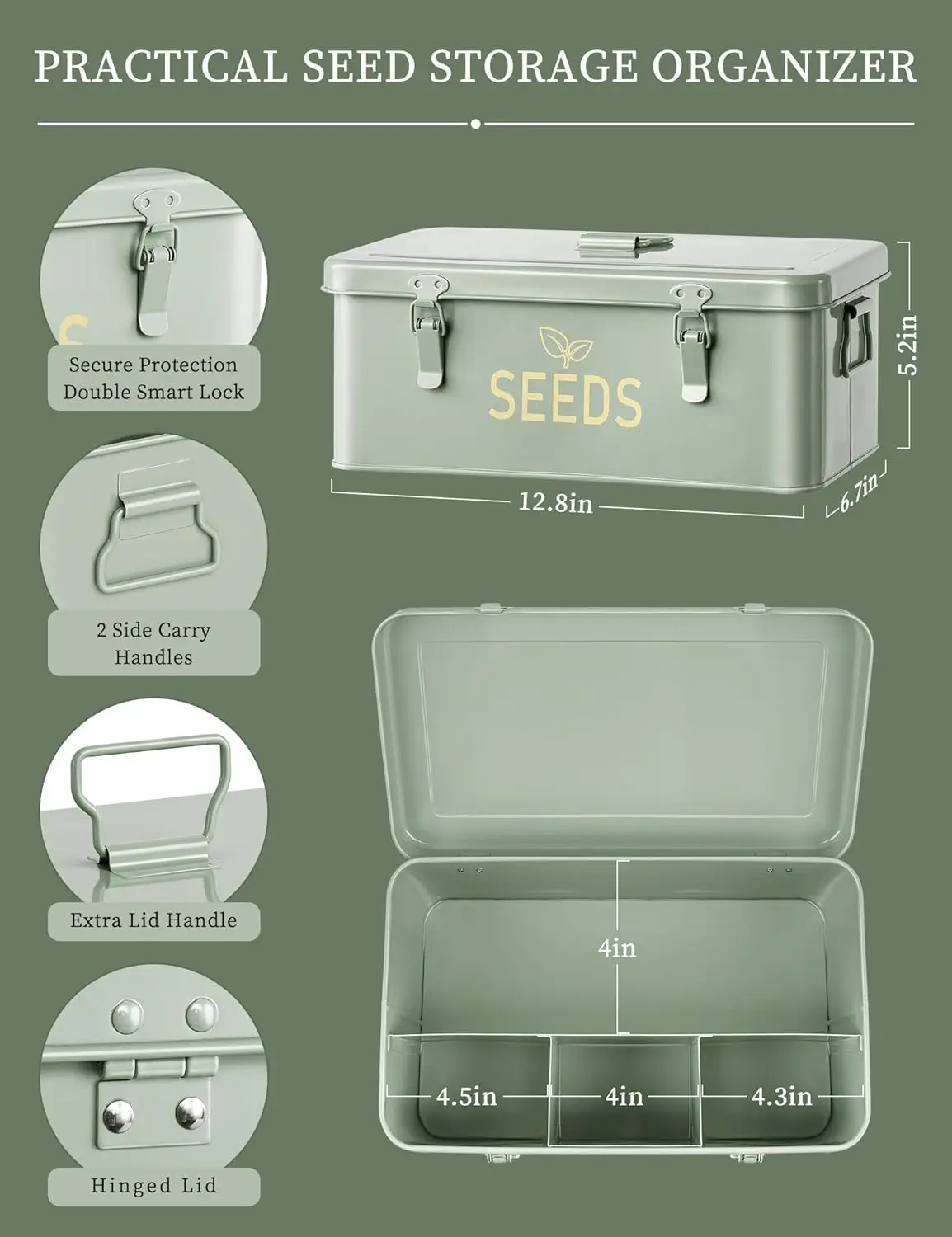 The OEM T234 Metal Seed Storage Box is a classic rectangular container (32.5×17.3×13.7cm) designed for organized and secure seed saving. Crafted from lacquered metal with a sustainable design, it features safety locks to protect seeds from pests and moisture, ensuring long-term storage. With a 7L capacity, it is ideal for organizing seed packets, plant labels, or gardening tools. The eco-friendly box supports customized colors and logos, making it a practical and versatile home organizer for gardening enthusiasts