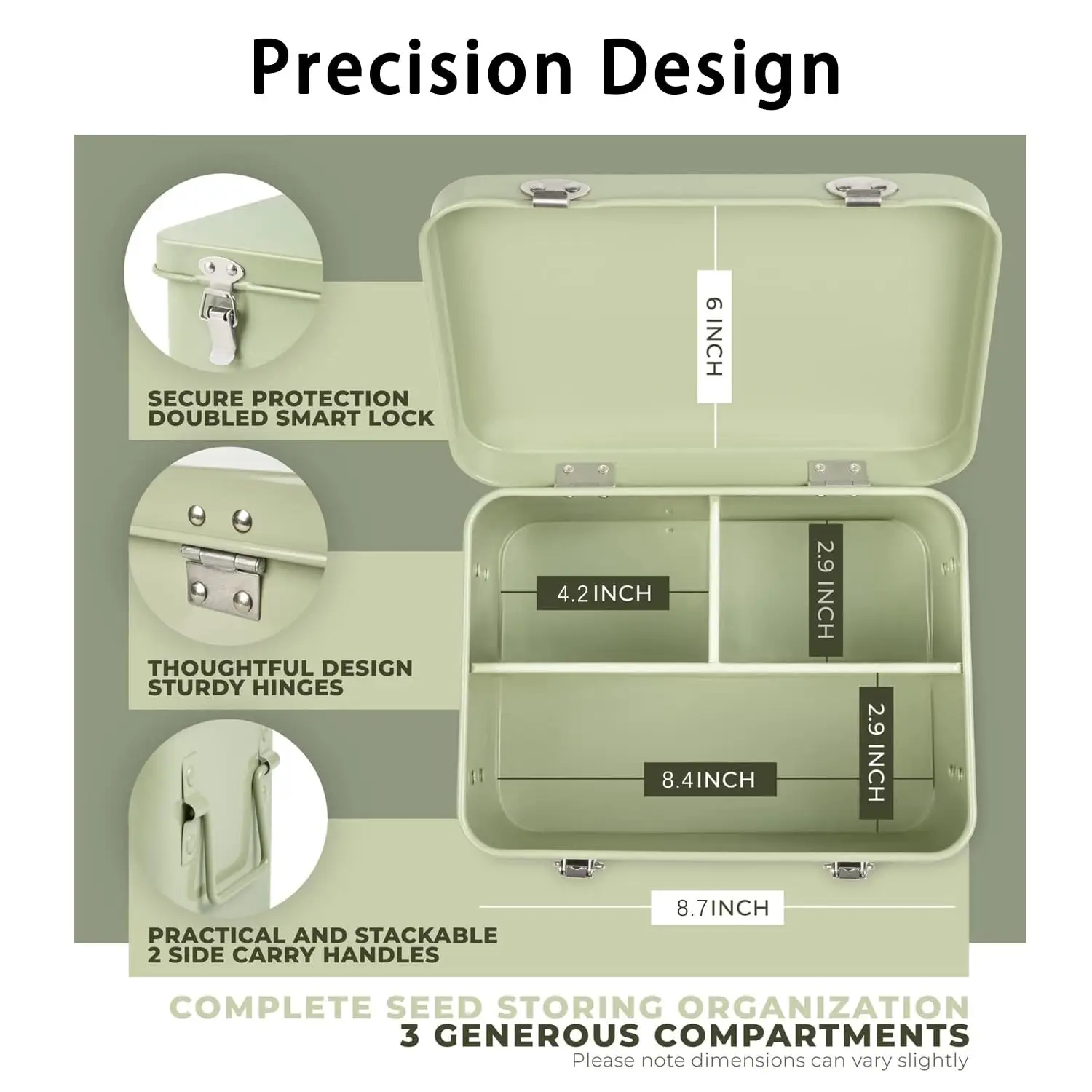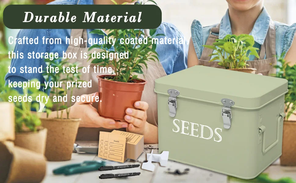 • Durable & Eco-Friendly Material: Constructed from rust-resistant galvanized iron, this storage box ensures long-term protection for seeds against moisture, pests, and environmental damage. The robust material is designed for repeated use, making it a sustainable choice that reduces waste compared to disposable packaging.
