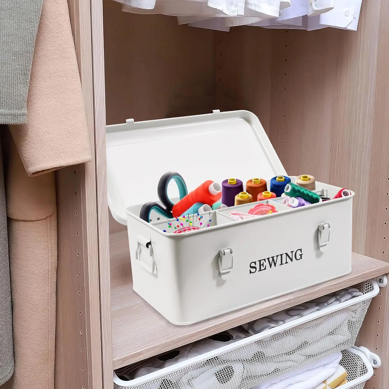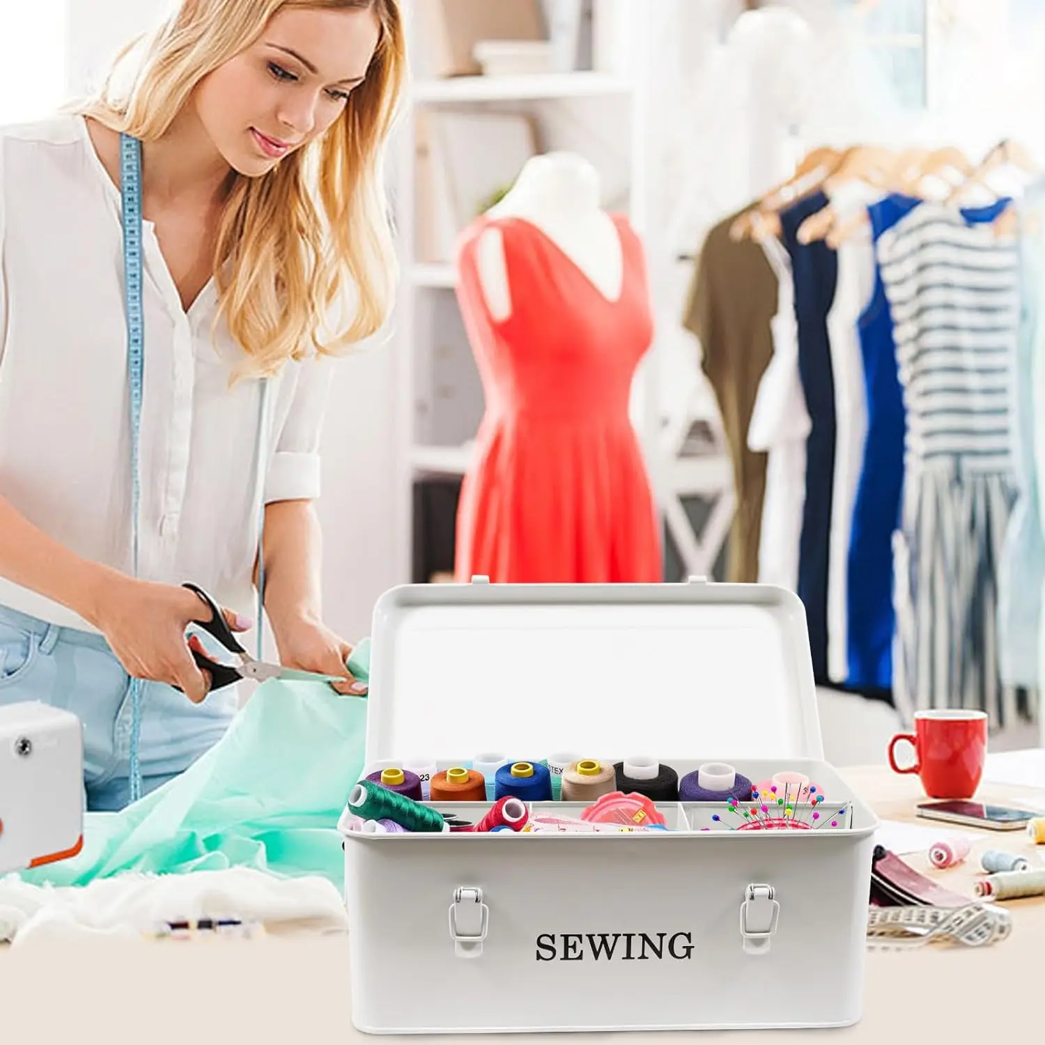 Metal Sewing Kit Storage and Organizer with Compartments Sewing Box