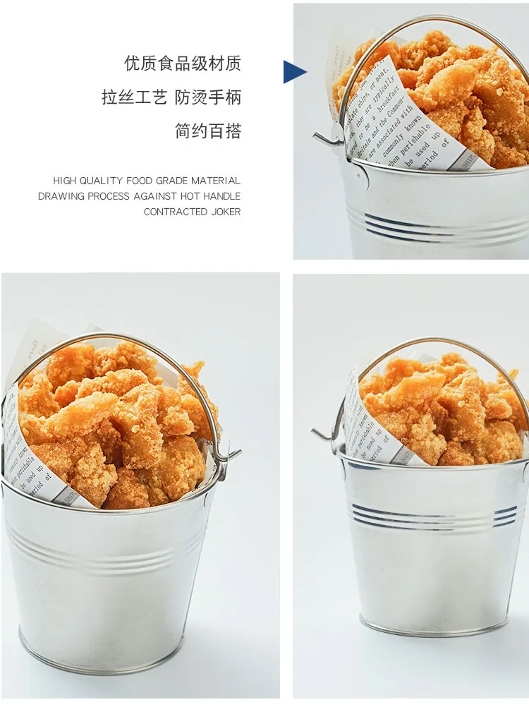 The finish provides a smooth, easy-to-clean surface that resists sticking and wear, contributing to the bucket's longevity and ease of maintenance. While the primary material is metal, the coating adds an extra layer of protection. The bucket's design focuses on freshness preservation, helping to keep your fried foods crispy and warm for longer periods during service. With a modern design aesthetic, it adds a touch of style to any kitchen counter, dining table, or party setup.