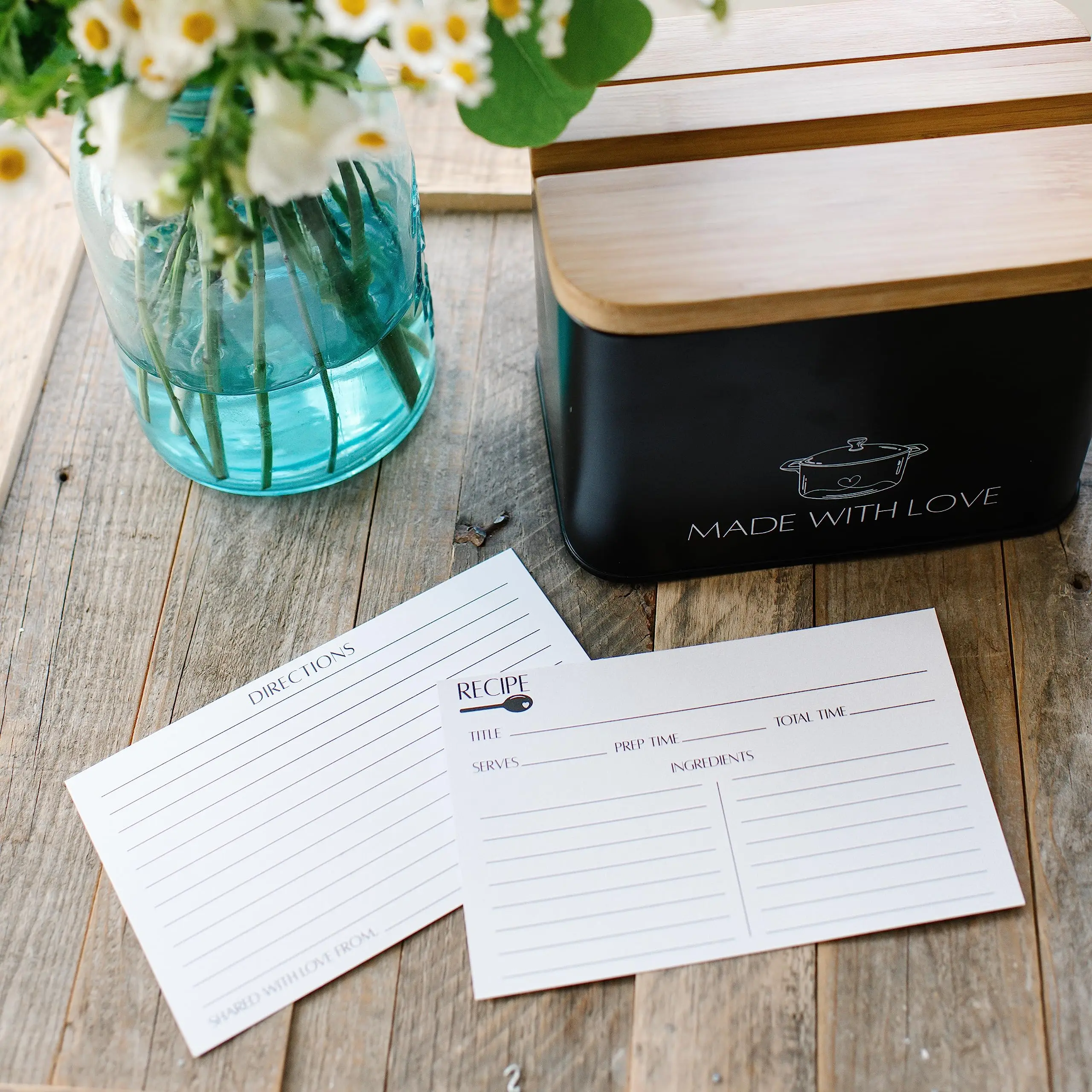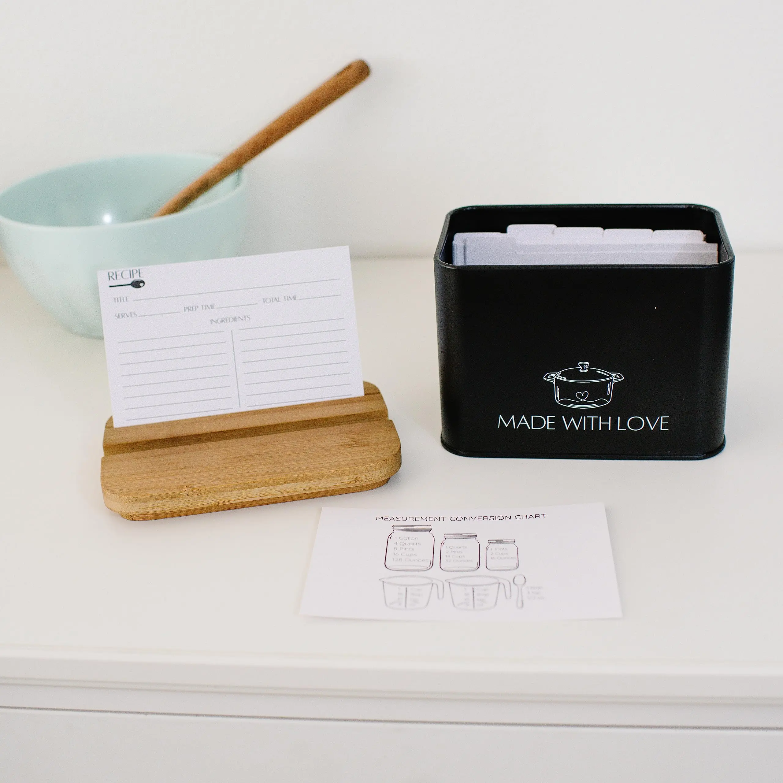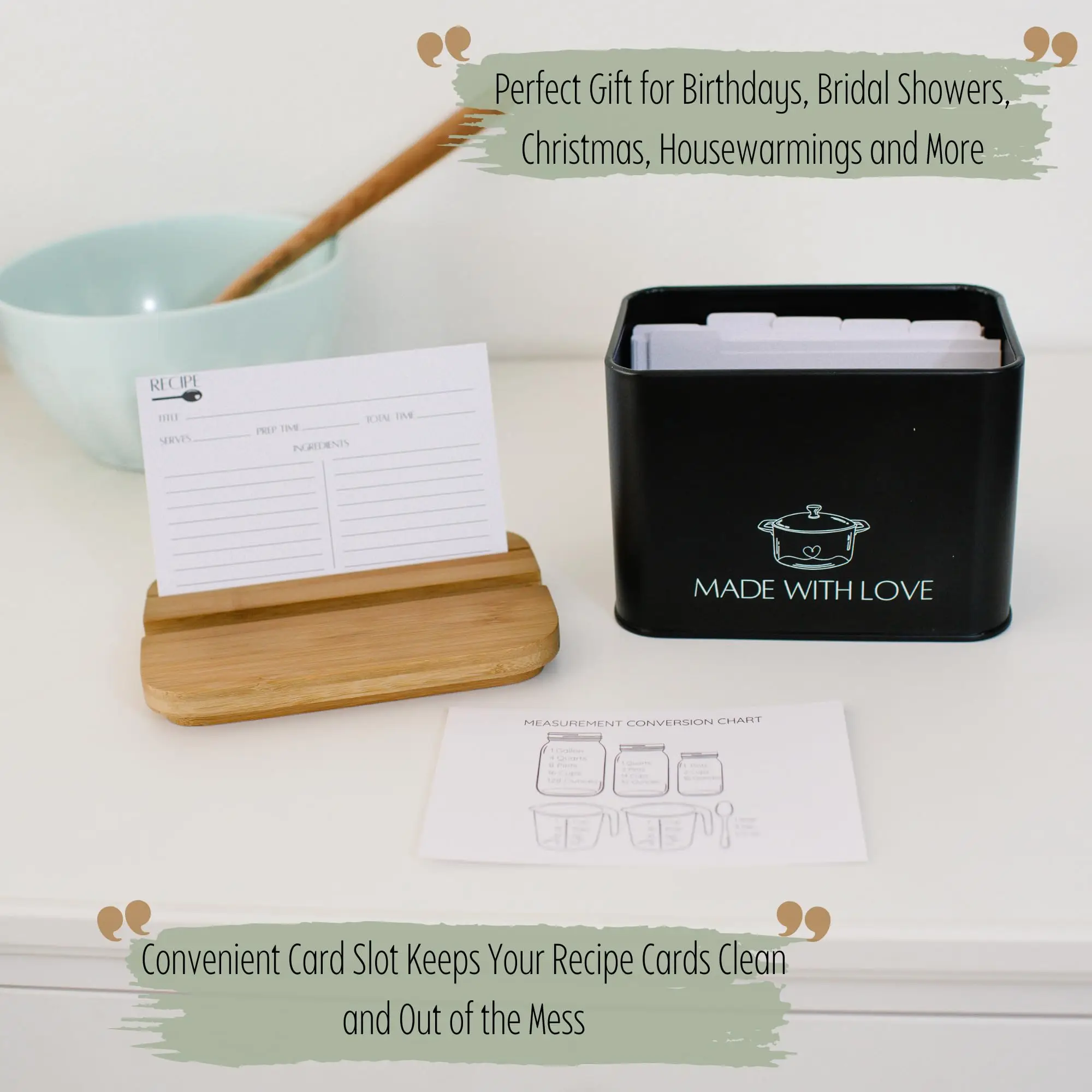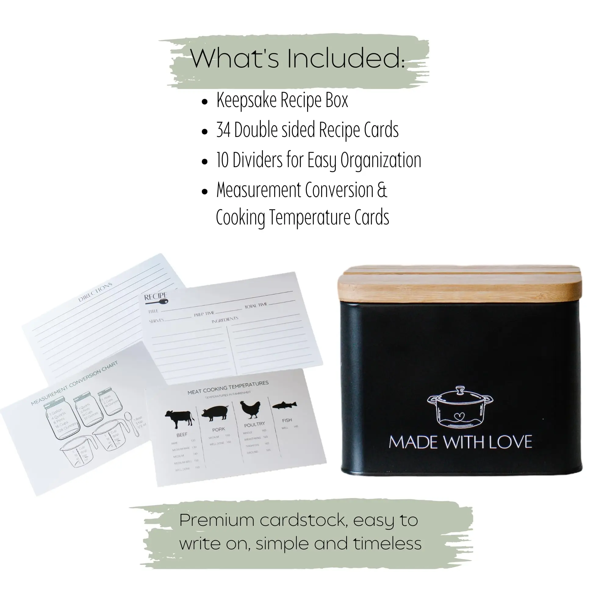 • Modern Recipe Cards and Box Set Metal Recipe Card Holder Black Recipe Box with Cards and Dividers
