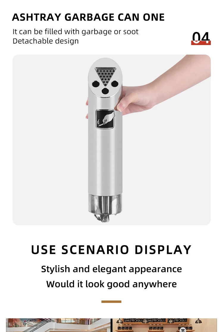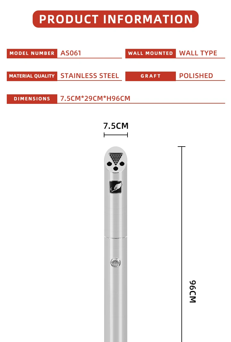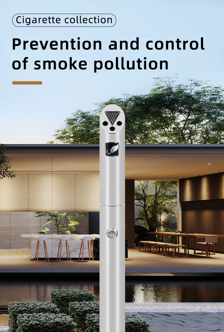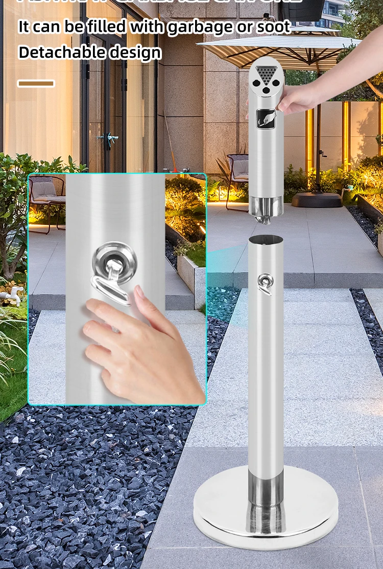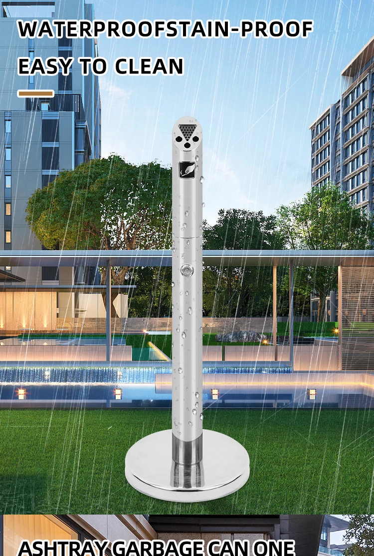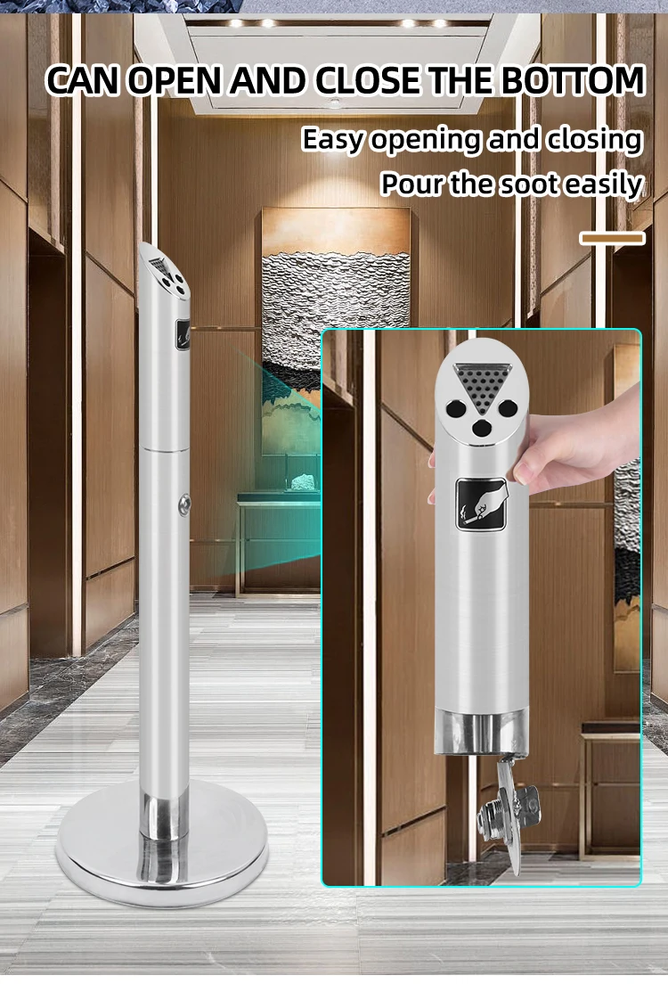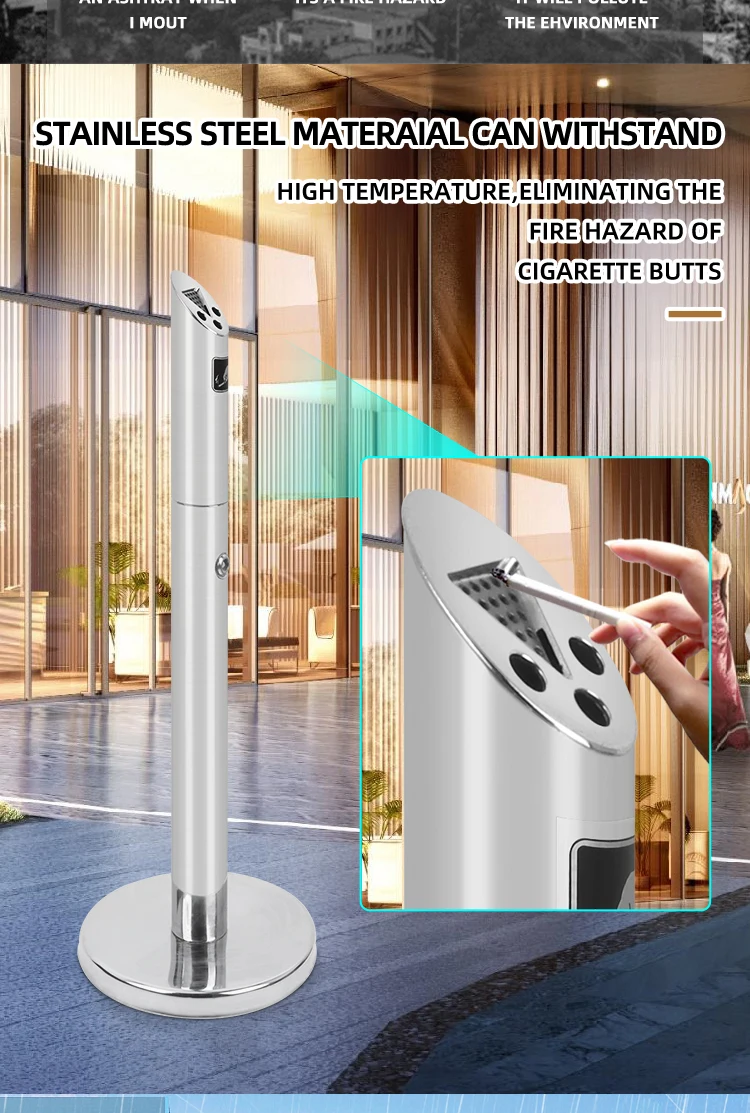 Outdoor Ashtray Smoke Ash Receptacle Stainless Steel Standing Ashtray Bin for Street Hotels Recycle Cigarette Bin
