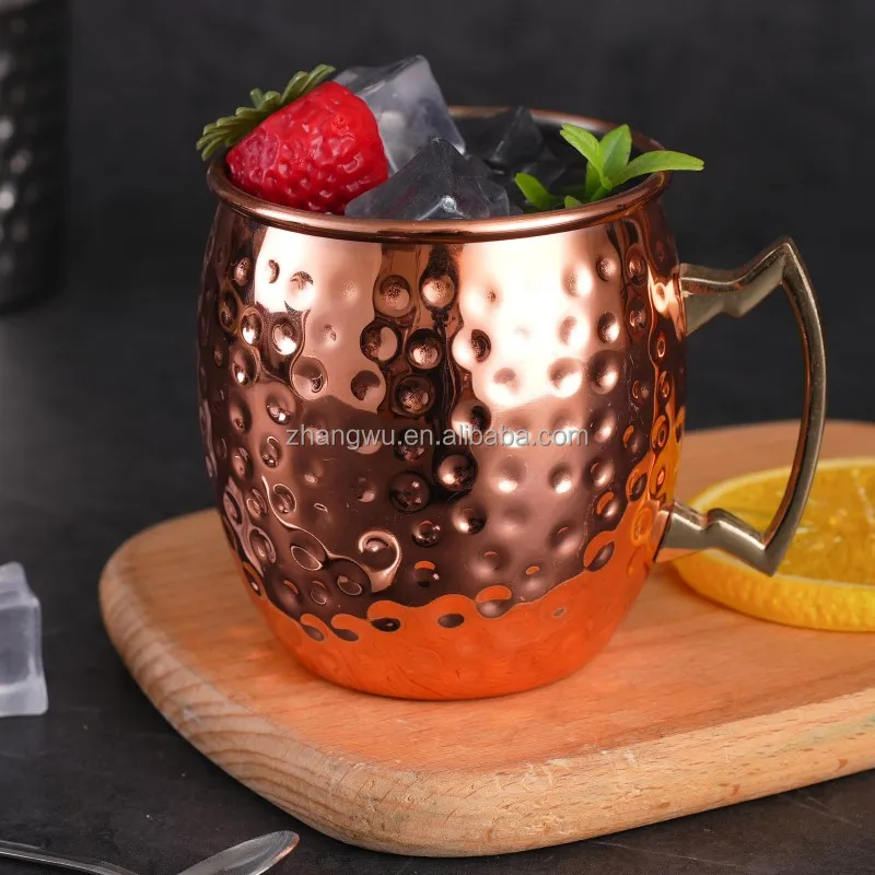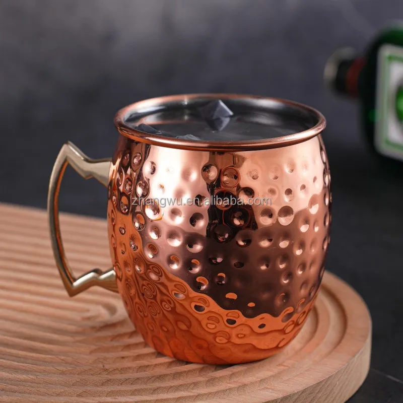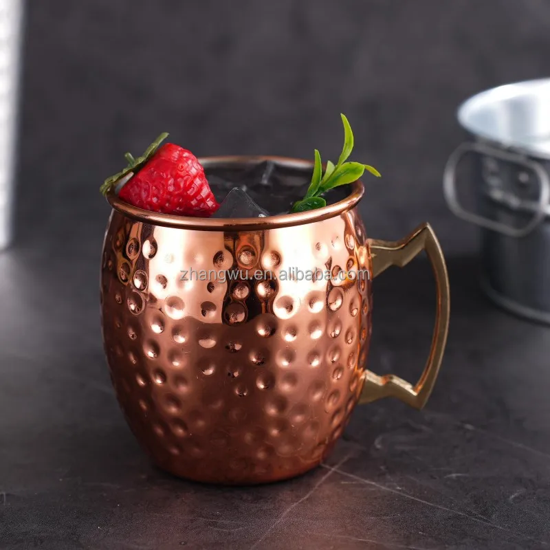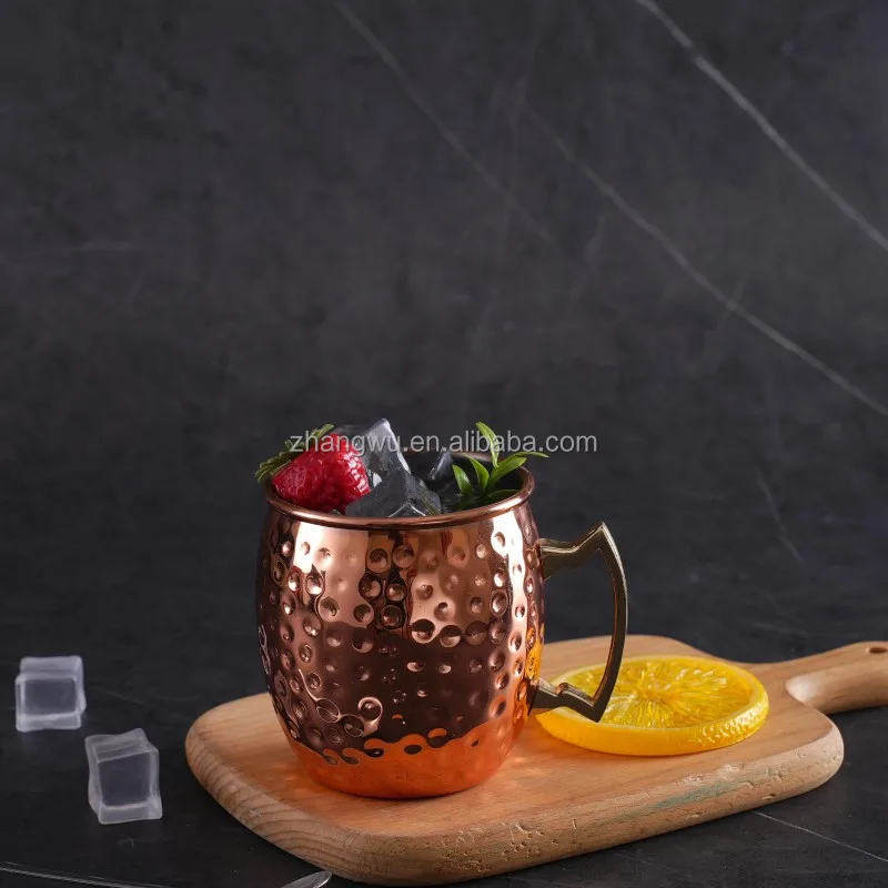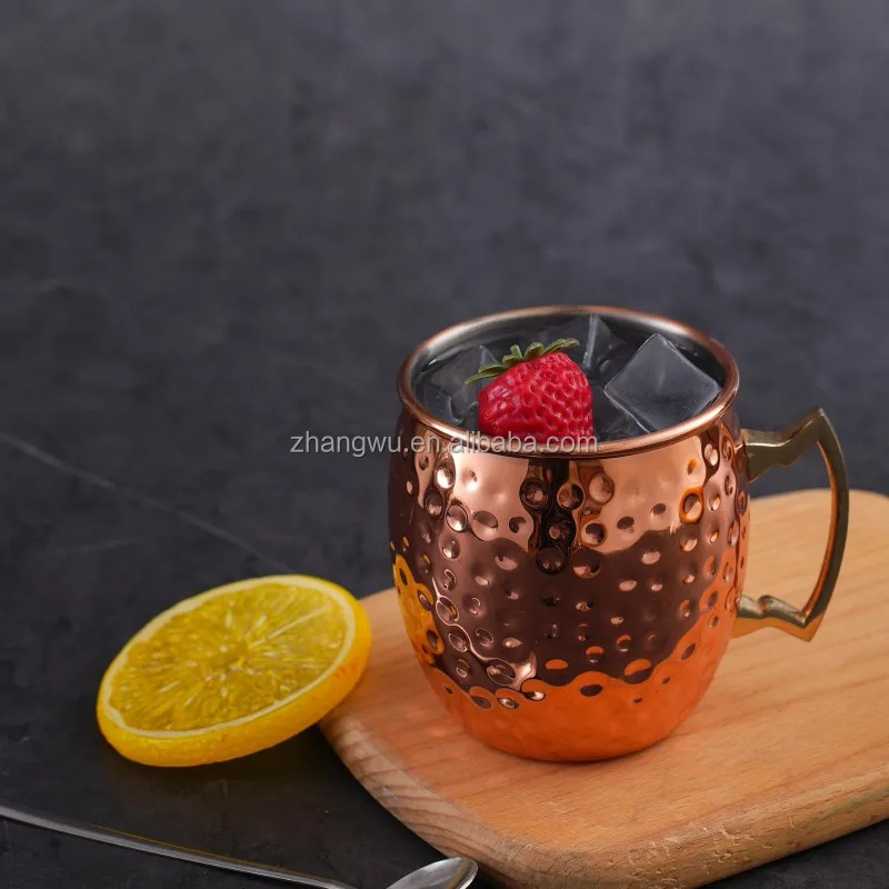 Cross-border stainless steel Moscow mule cup, hammered drum-shaped cup, European cocktail cup, stainless steel copper-plated beer mug