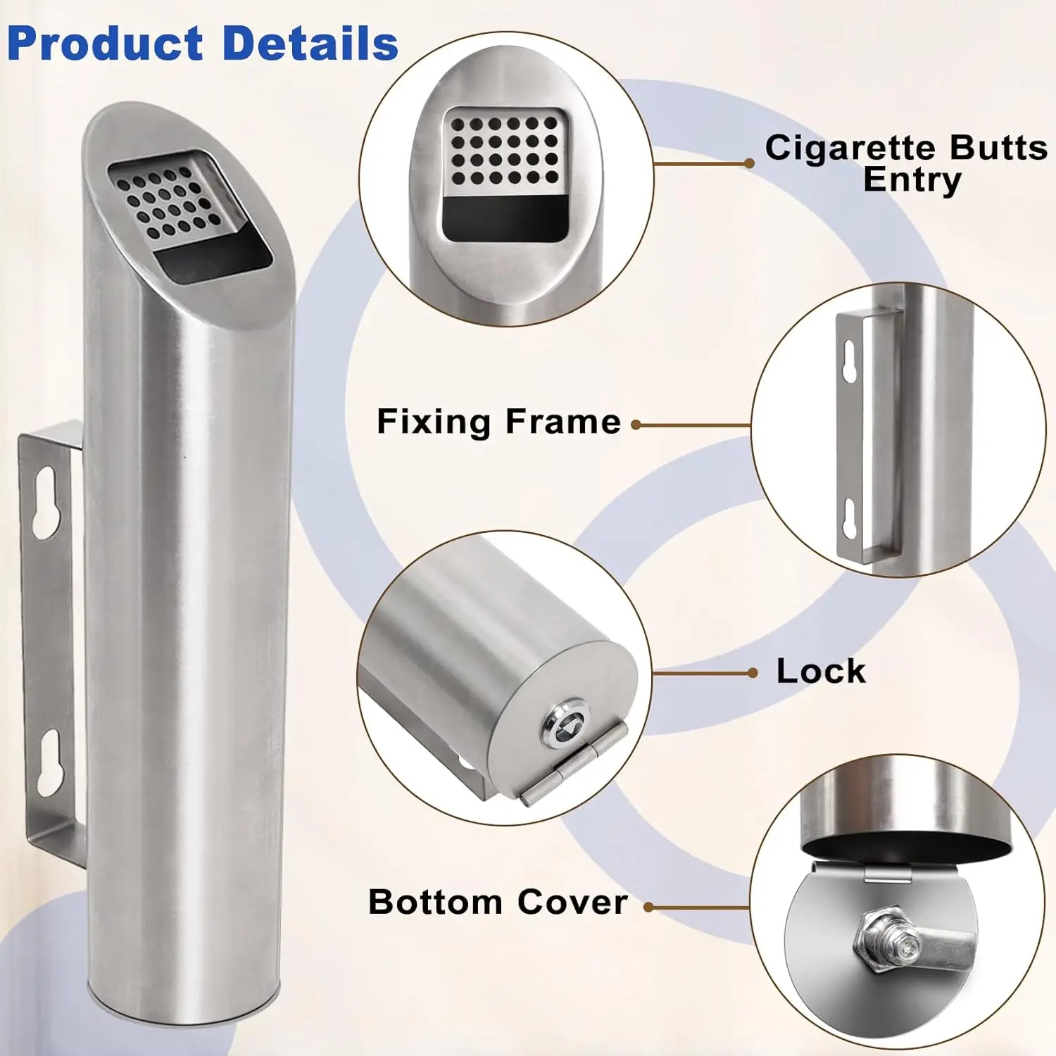 The Fireproof Wall-Mounted Ashtray is a compact, commercial-grade disposal unit designed for hotels and public spaces. Crafted from 304 stainless steel, it features a classic round design with a locking mechanism to prevent unauthorized access and ensure fire safety. Customizable in color and logo, it supports mirror/satin finishes and fits seamlessly into hotel lobbies, offices, or homes. Measuring 6.3 * 9.5 * 29.2CM, it includes bubble wrap packaging.