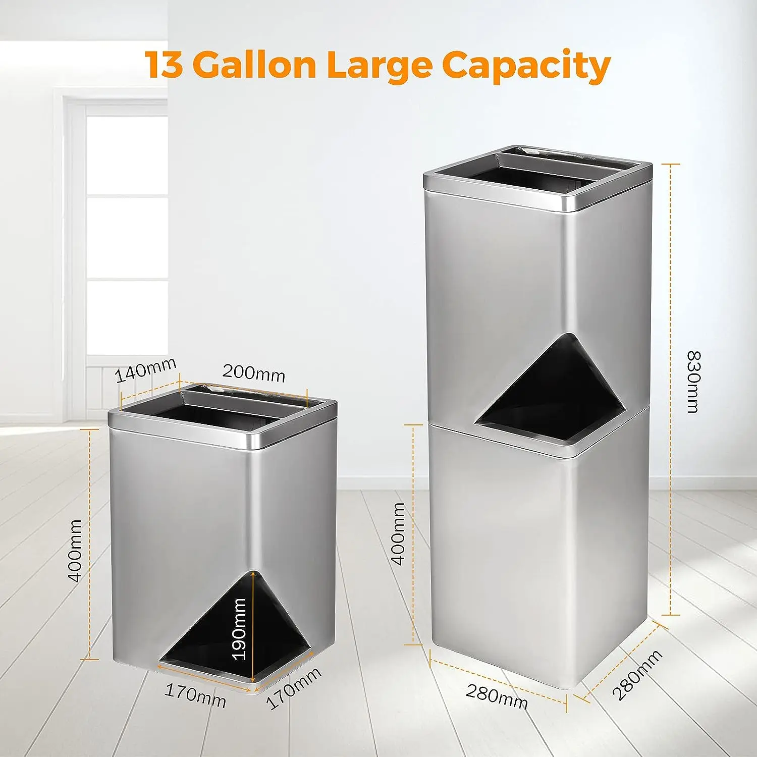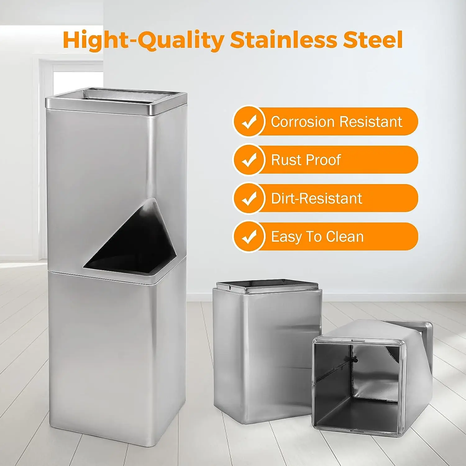 The Recycling Rubbish Stainless Steel Trash Can is engineered for public facility managers and municipal operators requiring reliable waste disposal infrastructure. Its rectangular standing form factor facilitates flexible placement in diverse settings such as campus grounds, transit stations, and commercial lobbies. This metal trash can supports efficient sorting and encourages recycling through its accessible lidless design, addressing the demands of environments with high foot traffic. The product is suited for users focusing on sustainable waste management and maintaining cleanliness in public areas.