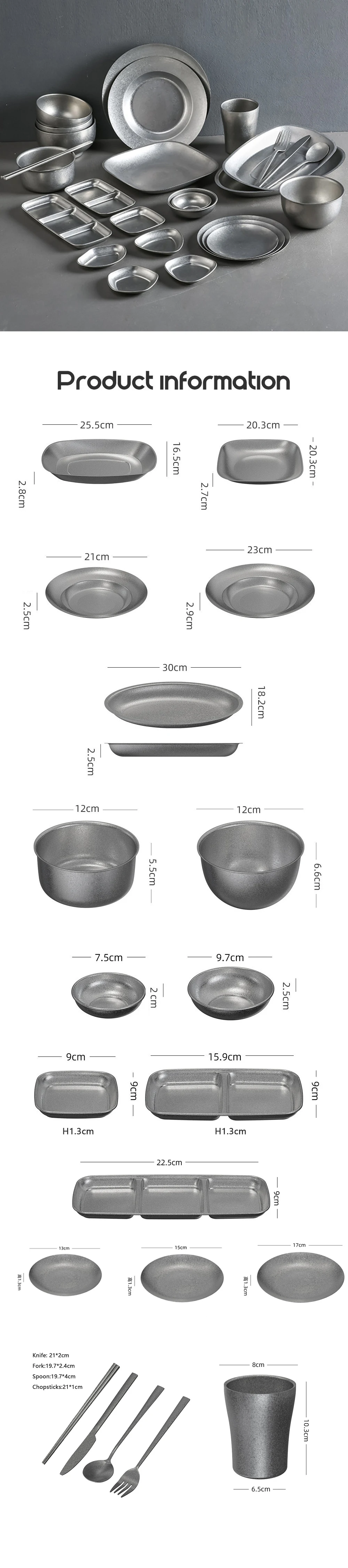 Service Plate Dinnerware Tray Plate & Bowl Set Silver Vintage Party Round Fish Dish for Food Stainless Steel for Events Metal