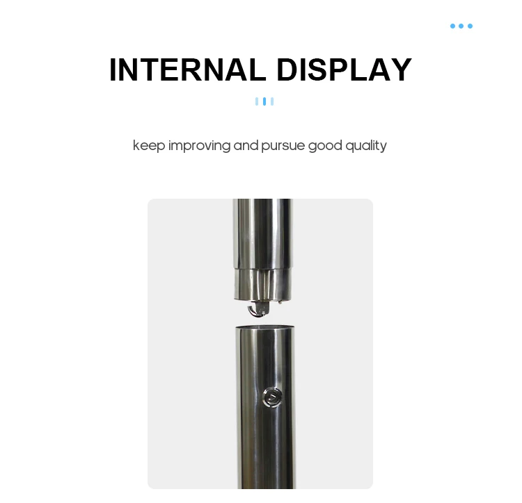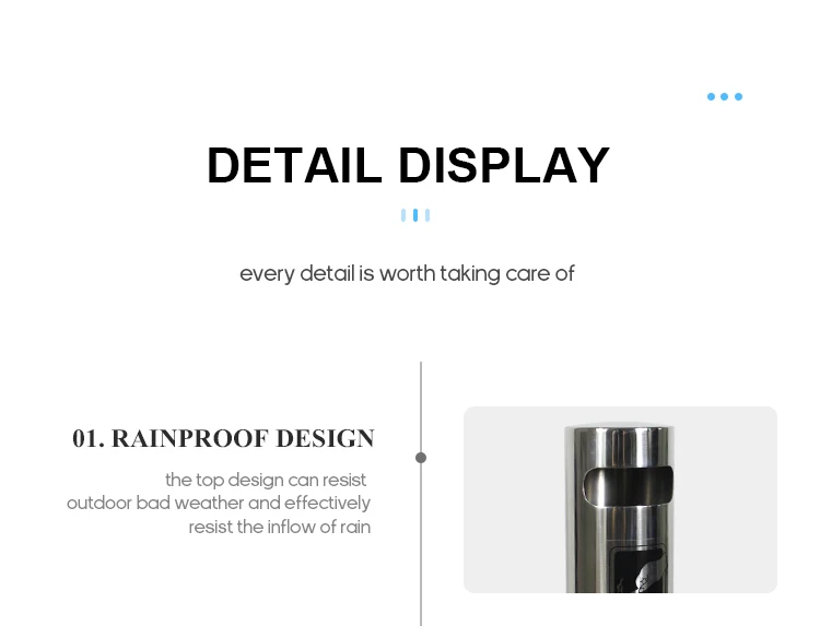 Premium floor-standing outdoor ashtray made of high-quality stainless steel (304#), featuring a modern round design with smokeless functionality. Ideal for hotels, commercial buildings, and public spaces. Custom logo and color options available. Durable, elegant, and easy to maintain.