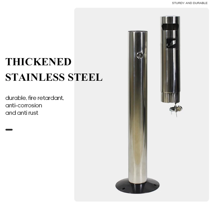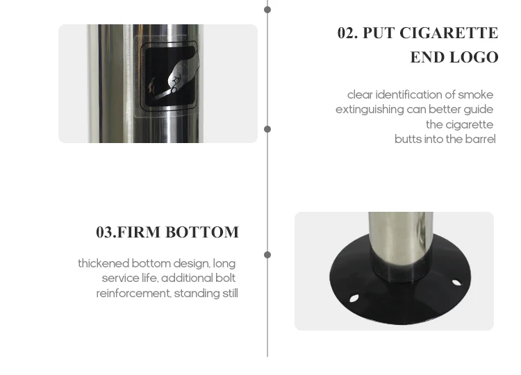 Stainless Steel Ashtray Custom Logo Hotel Outdoor Vertical Cigarette Bins Ash Collector 304# Floor Standing Ashtray