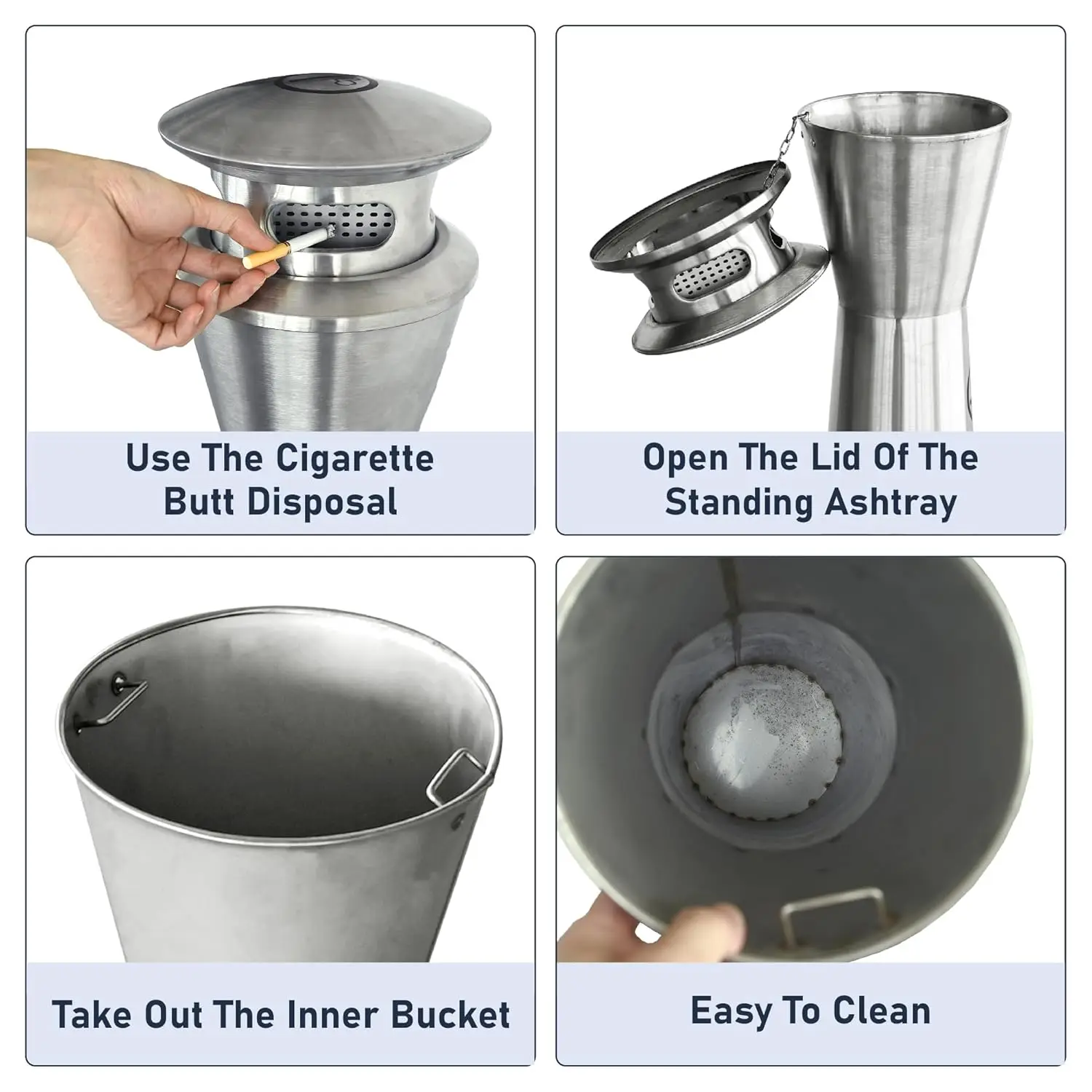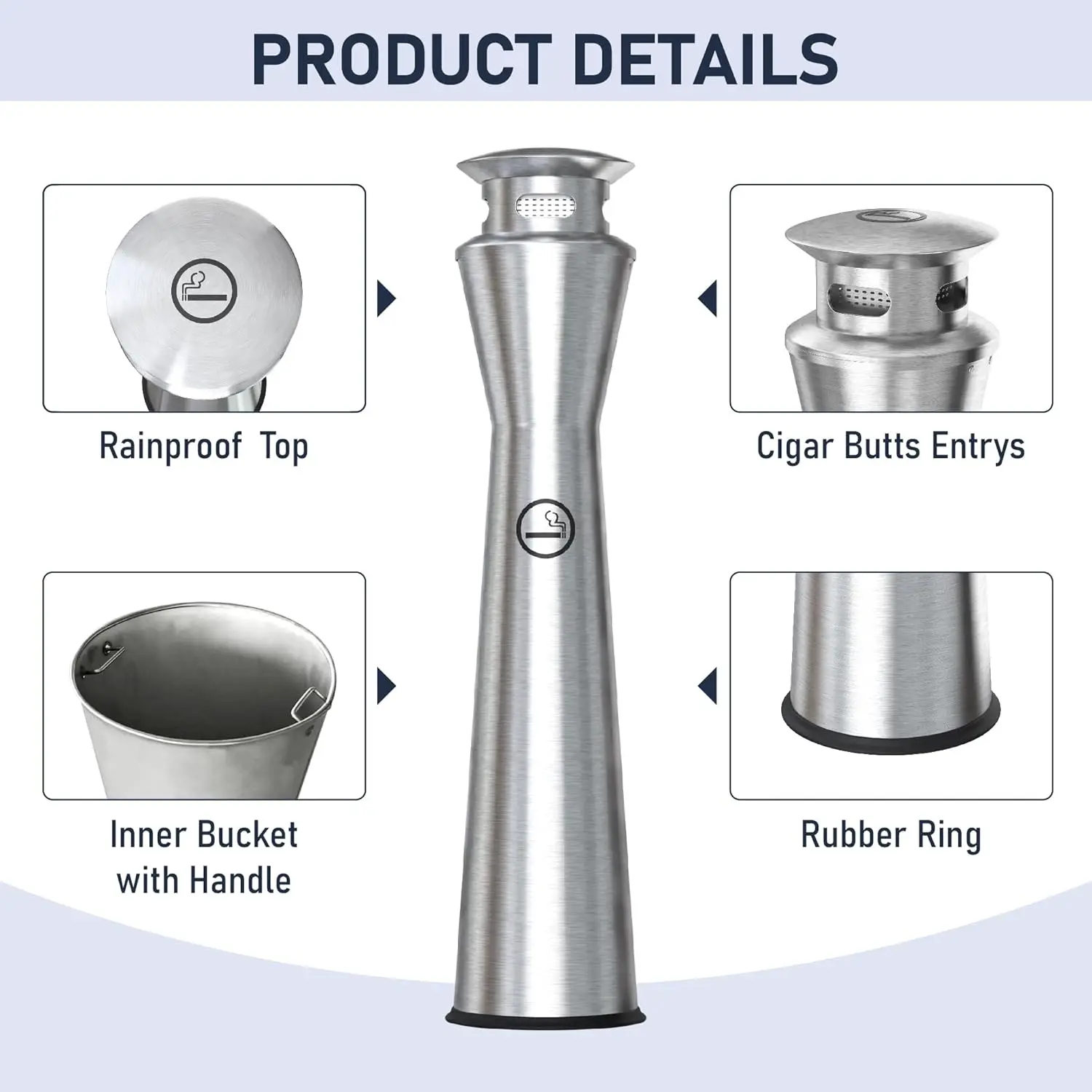 Stainless Steel Ashtray Outdoor Smoking Cigarette Bin Ashtrays Bin Modern Design Street Use Floor Standing Ashtray