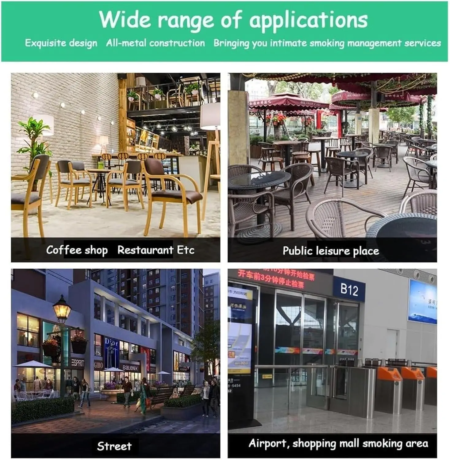 The SS152 Outdoor Wall-Mounted Cigarette Ashtray is a classic-style, square-shaped stainless steel ash bin designed for hotels and restaurants. Measuring 8×8×51 cm, it features a durable construction, key-locking mechanism for security, and customizable color options. Ideal as a luxury smoking accessory, this wall-mounted ashtray combines functionality with timeless elegance for outdoor use.