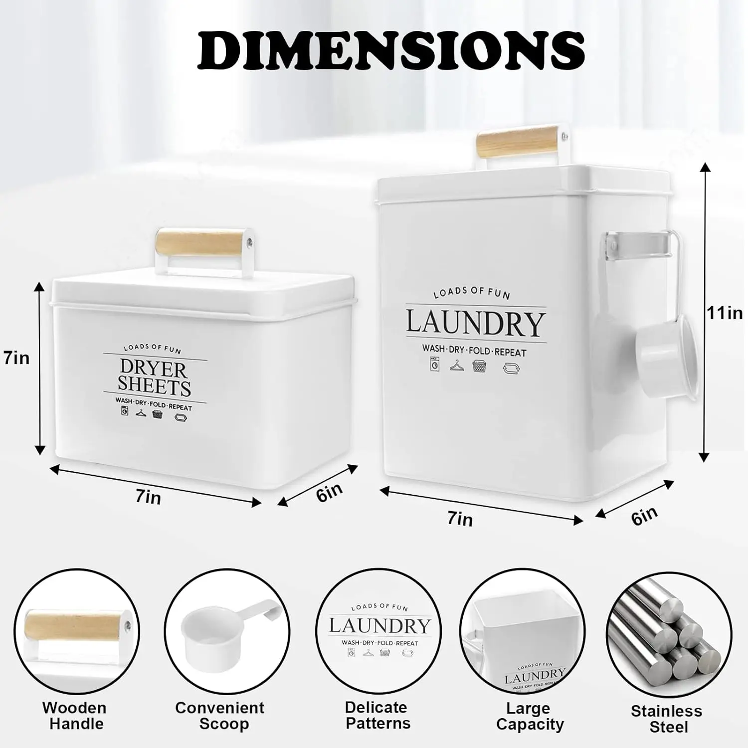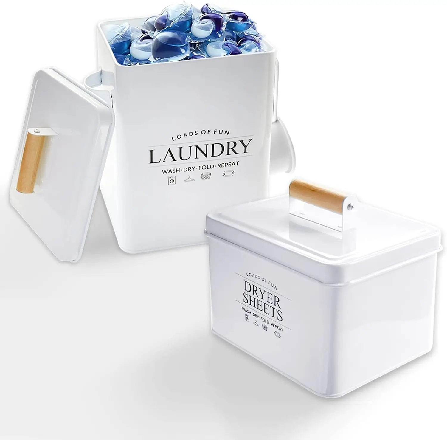 Laundry Room Storage Box with Lid Metal Laundry Dryer Sheet Dispenser 2 Pcs Laundry Pods Container with Dryer Sheet Holder
