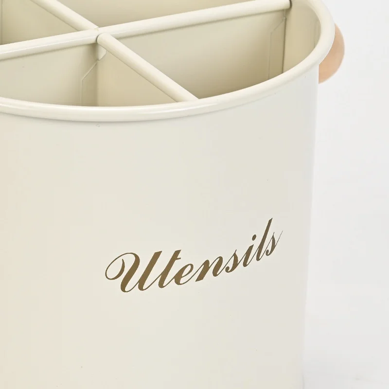 The Model Kitchen Utensil Storage Canister is a sleek and functional storage solution designed for the modern household kitchen. Crafted from durable metal, this fashionable holder (13.5x13cm) provides a convenient and organized space for your essential cooking tools, including forks, spoons, chopsticks, and other utensils. Its sturdy construction ensures longevity for daily use. The product supports customized colors and logos, making it an excellent option for branding or matching specific kitchen decors. It serves as a practical and tidy organizational unit for any kitchen countertop