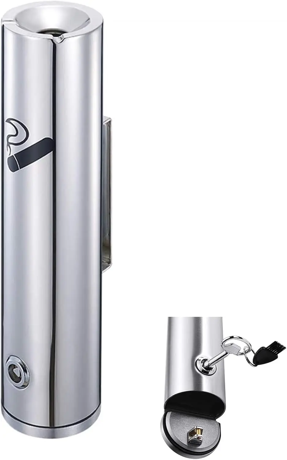 The Wall-Mounted Commercial Ashtray is a robust, lockable outdoor cigarette bin crafted from durable stainless steel. Designed for high-traffic public spaces like airports, hotels, and restaurants, it features a round, American-style silhouette with a customizable logo and color (e.g., silver/black). The unit includes a secure locking mechanism for safe ash disposal and is packaged with protective bubble wrap and carton. Ideal for wall installation, it ensures fire safety and cleanliness in smoking areas while withstanding outdoor conditions