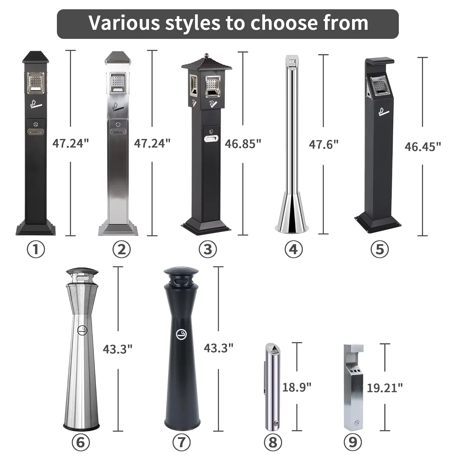 Product Name: SUNLIGHT SS007 Floor Standing Metal Ashtray Bin with Inner Bucket