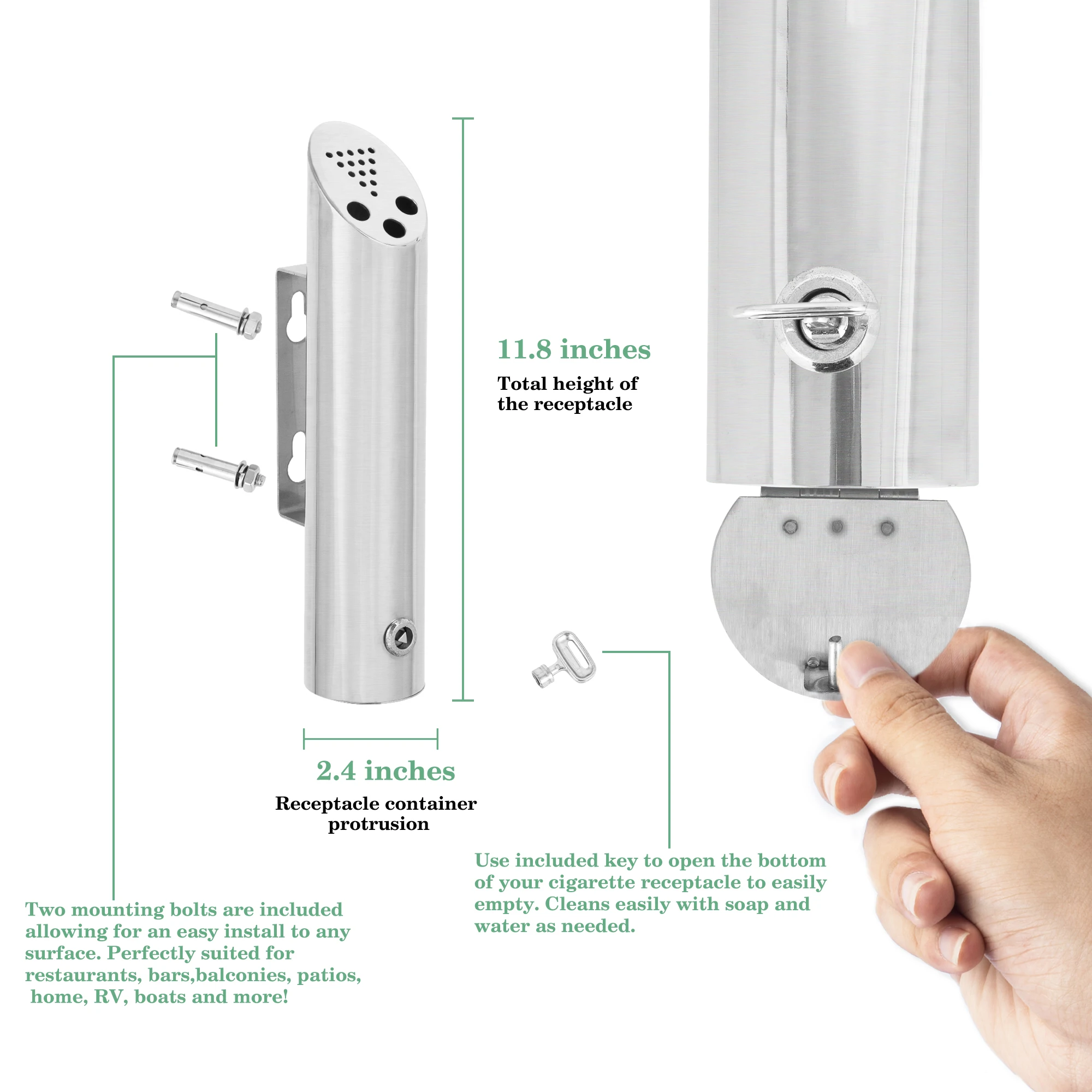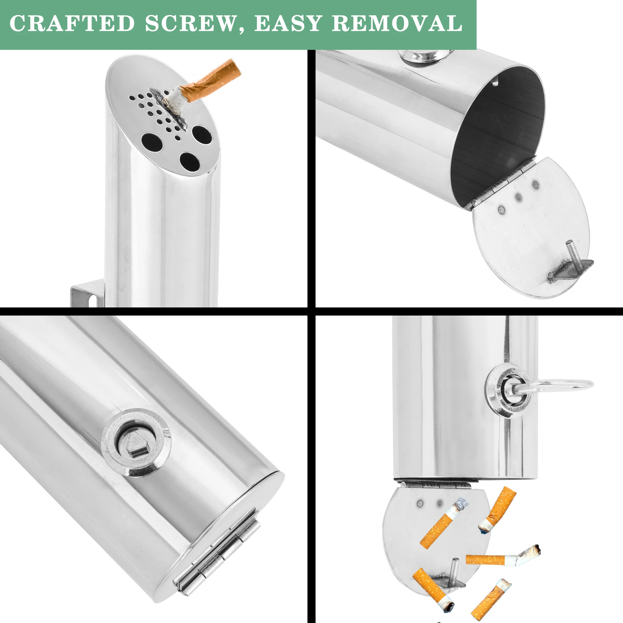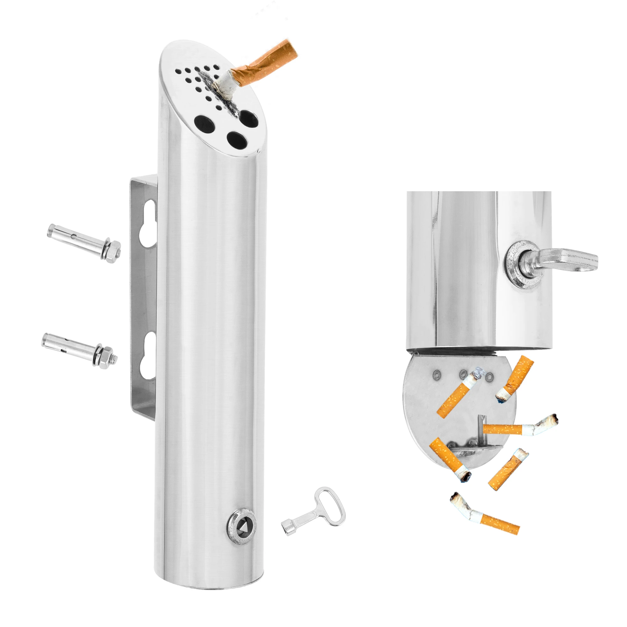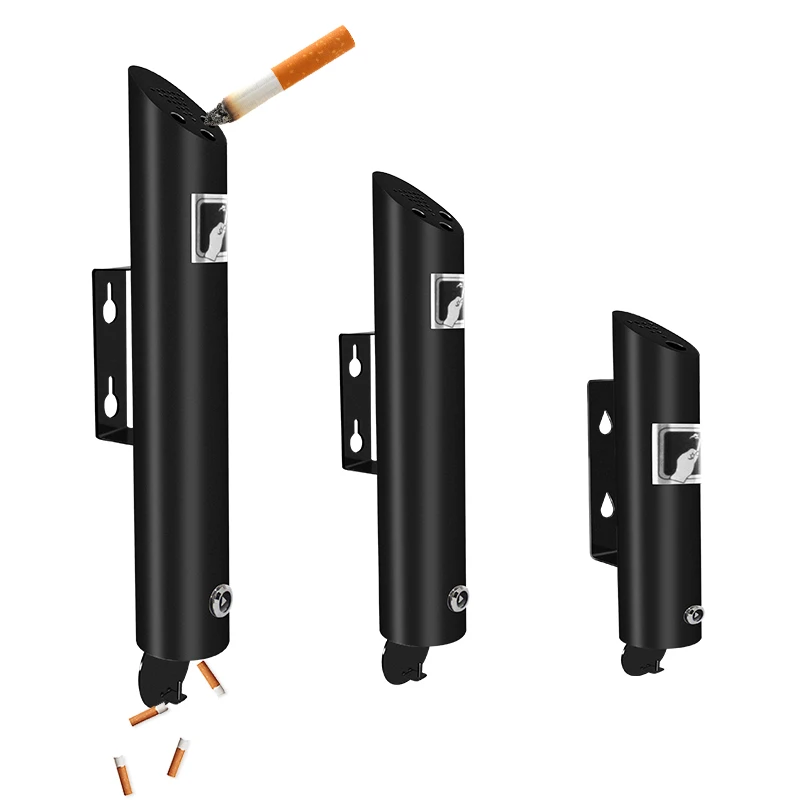 This round black ashtray bin (Model AS016) is a robust, wall-mounted solution designed for outdoor and public smoking areas. Crafted from durable stainless steel, it features a lockable design. With a compact round shape (Dia 6.2×H30 cm), the ashtray is ideal for high-traffic locations like airports, hotels, bars, and restaurants. It supports custom logos and colors, making it suitable for branding purposes. Packed in bubble bags and cartons, it ensures safe delivery for commercial or institutional use